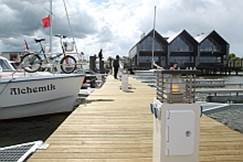stałe i pływające, budynek bosmański, slip do wyciągania jachtów oraz