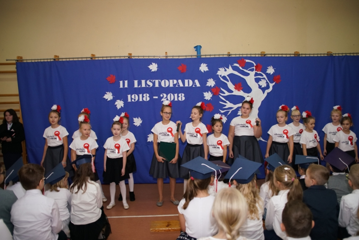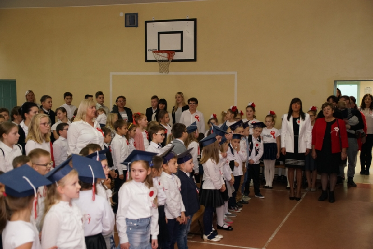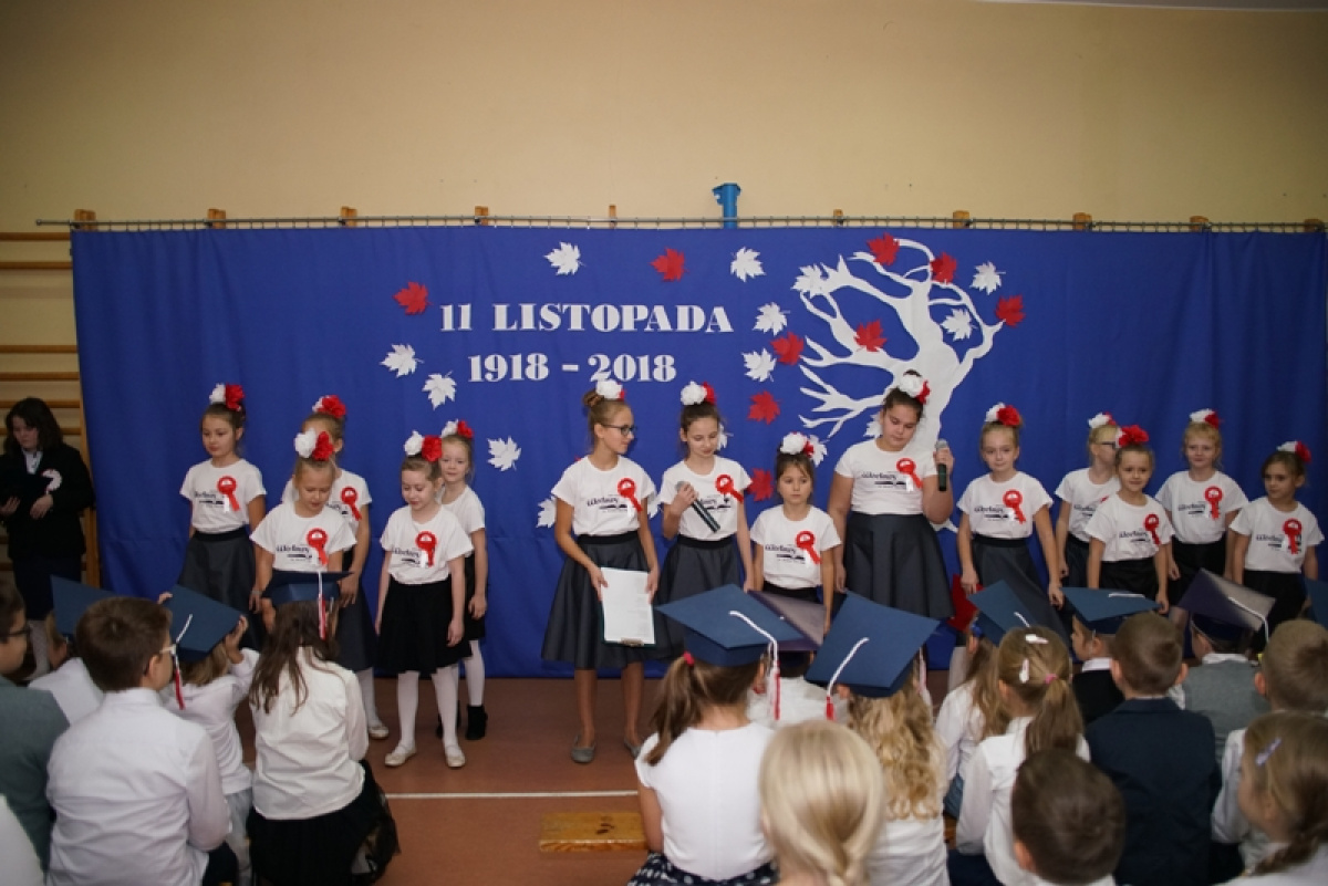 Przede wszystkim była to niezwykła lekcja patriotyzmu - „Cieszmy się, że o wojnie i krwawej historii uczymy się tylko z książek. Pamiętajmy zawsze o naszej Ojczyźnie, nie zapomnijmy języka polskiego” - takie przesłanie nieśli w piątek uczniowie. 100 rocznica pozostanie na zawsze w pamięci pierwszoklasistów, gdyż otrzymali legitymacje szkolne. Barwy narodowe, godło, hymn odśpiewany o godzinie 11.11 oraz własnoręcznie wykonane kotyliony podkreśliły patriotyczny charakter apelu. Młodzi artyści i organizatorzy tego spektaklu zebrali zasłużone brawa i gratulacje od publiczności i zaproszonych gości, wśród których znaleźli się: Przewodnicząca Rady Gminy - Pani Bożena Daszewska, Kierownik Referatu Oświaty - Pani Maria Gierszewska, Dyrektor ŻOKiS w Cedrach Wielkich - Pan Łukasz Żarna, radne - Pani Justyna Słowińska, Pani Henryka Dombrowska, sołtysi - Pani Jagoda Prusak i Pani Magda Lech oraz byli pracownicy szkoły, rodzice i dziadkowie.