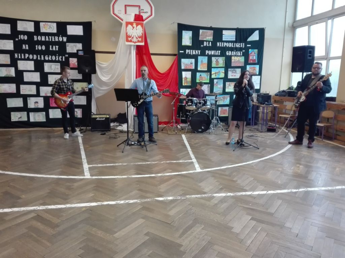 Szkolny zespół wokalny, Tęczowy Mix, wykonał hymn Solidarności, będący symbolem walki z komunizmem - „Mury”. Najmłodsi uczniowie zaśpiewali „Rogatywkę”, „Jesteśmy Polką i Polakiem”, „Wojenko, wojenko” oraz „Płynie Wisła, płynie”. Starsi uczniowie przypomnieli „Szarą piechotę”, „Marsz Pierwszej Brygady”, „Przybyli ułani pod okienko” i „Serce w plecaku”. Najstarsi zaś uczniowie zaprezentowali „Pierwszą Kadrową”, „Rotę”, „Żeby Polska była Polską” oraz romantyczne „Rozkwitały pąki białych róż” i „Dziewczynę z granatem”.