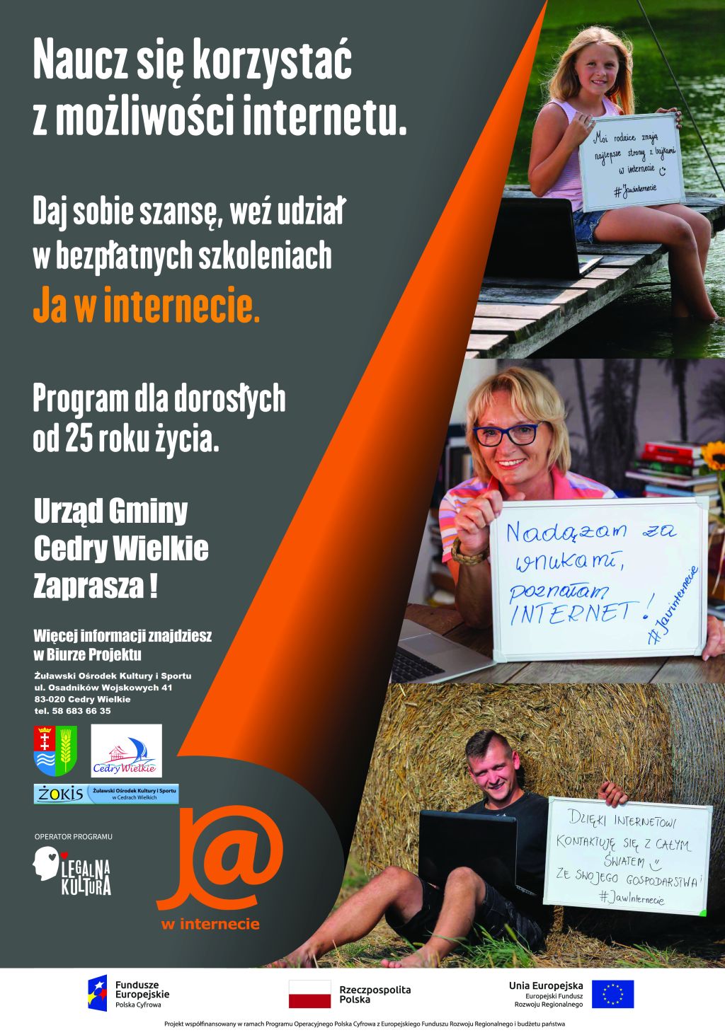 Gmina Cedry Wielkie w dniu 22 października 2018 r. podpisała umowę na realizację projektu „Ja w Internecie”. Projekt złożony został w partnerstwie ze Stowarzyszeniem Laboratorium Sztuki z Elbląga. „Ja w internecie” to program finansowania bezpłatnych szkoleń mający na celu podniesienie kompetencji cyfrowych osób dorosłych, które w większym stopniu korzystałyby z usług świadczonych drogą elektroniczną w życiu zawodowym i prywatnym.