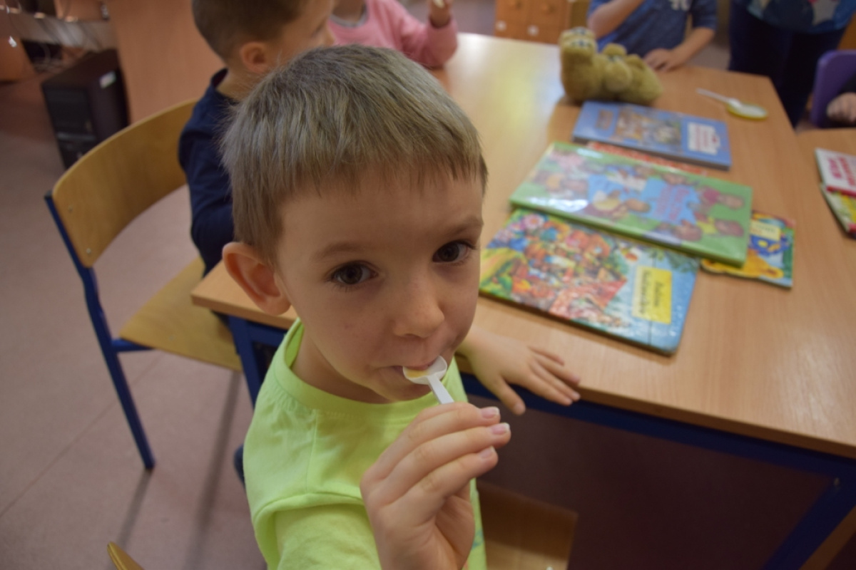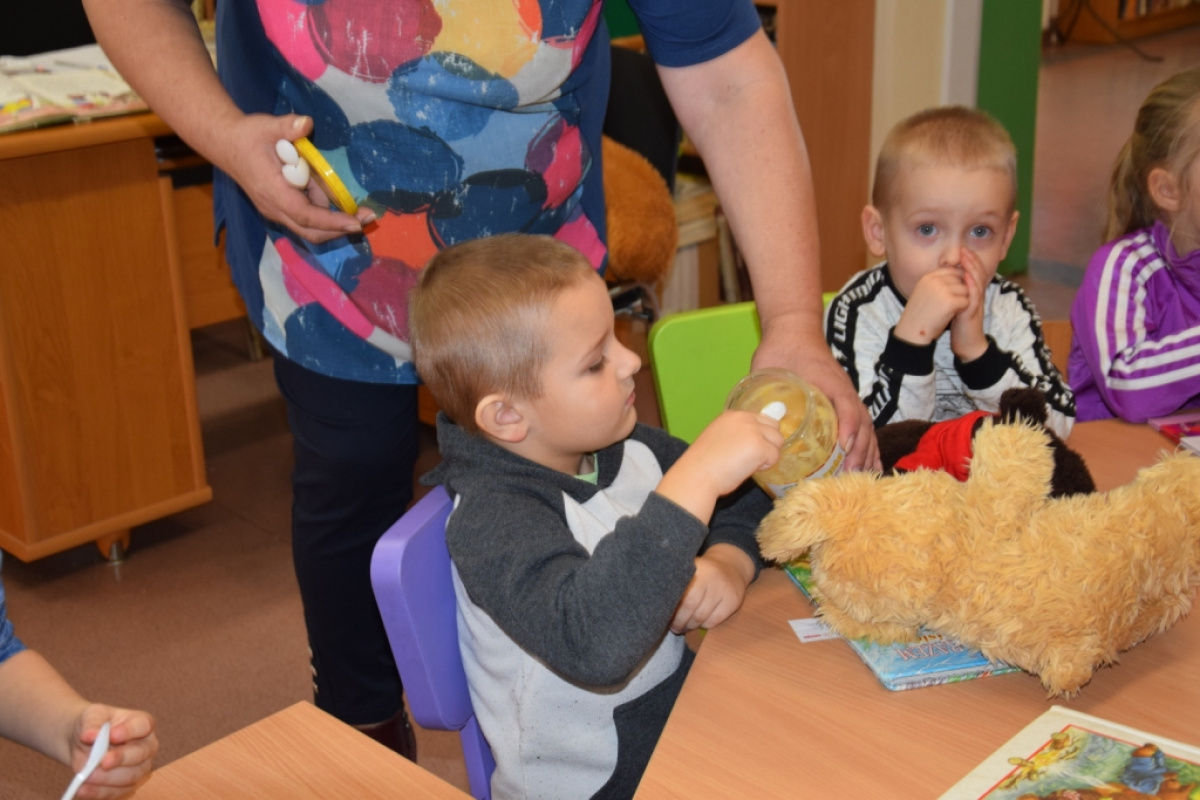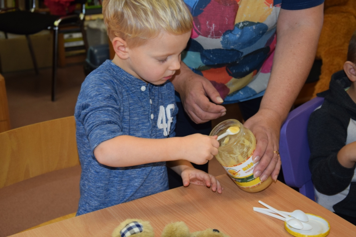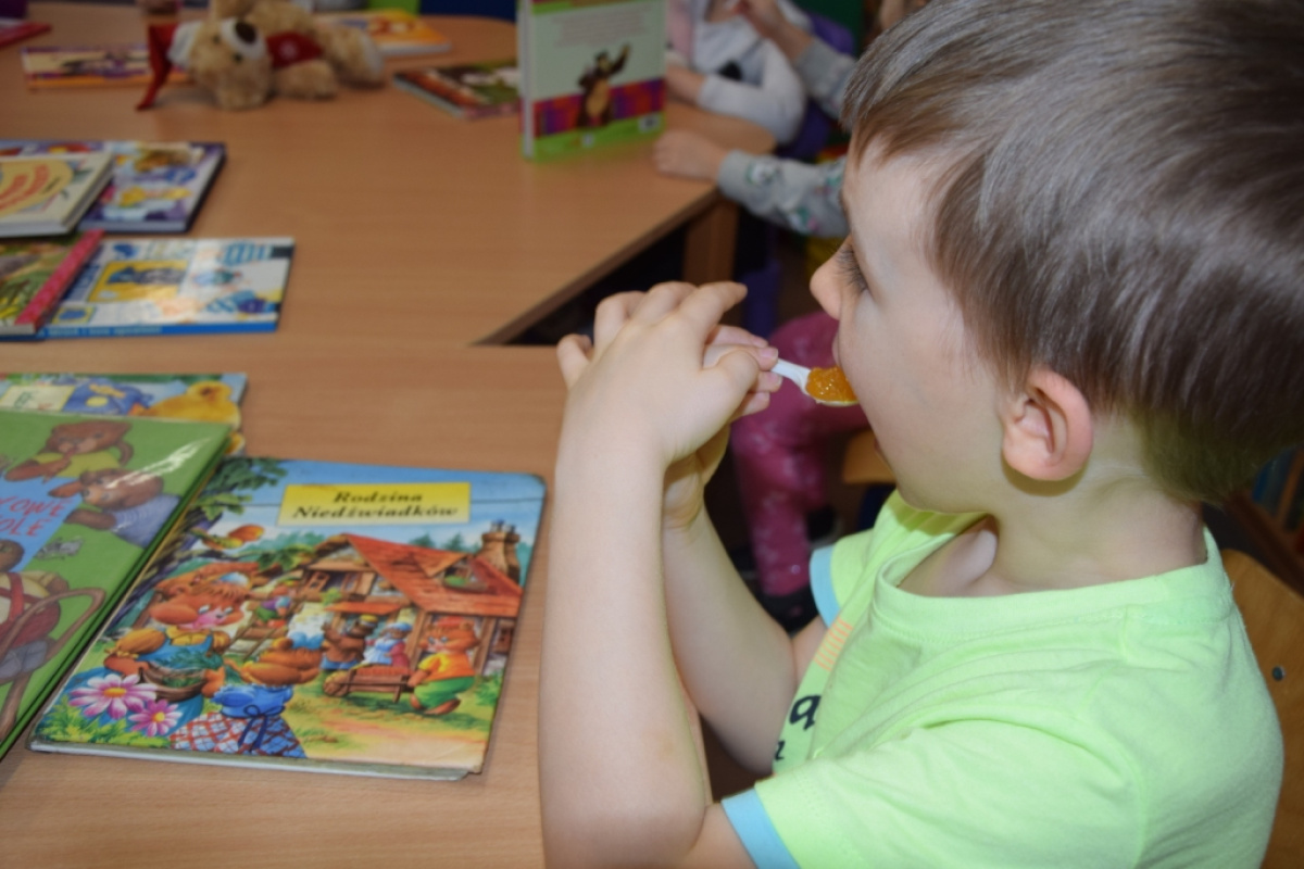 Dzieci opowiadały o swoich maskotkach, słuchały czytanych fragmentów książek o niedźwiadkach, uczyły się wiersza o misiu, odgadywały zagadki związane z misiami, próbowały nawet misiowych smakołyków - miodu i dżemu. Ten dzień wywołał u dzieci wiele uśmiechów i radości. Na koniec zajęć dzieci otrzymały słodki upominek i misiaczkowe puzzle, które wspólnie z rodzicami mogą ułożyć w domu.