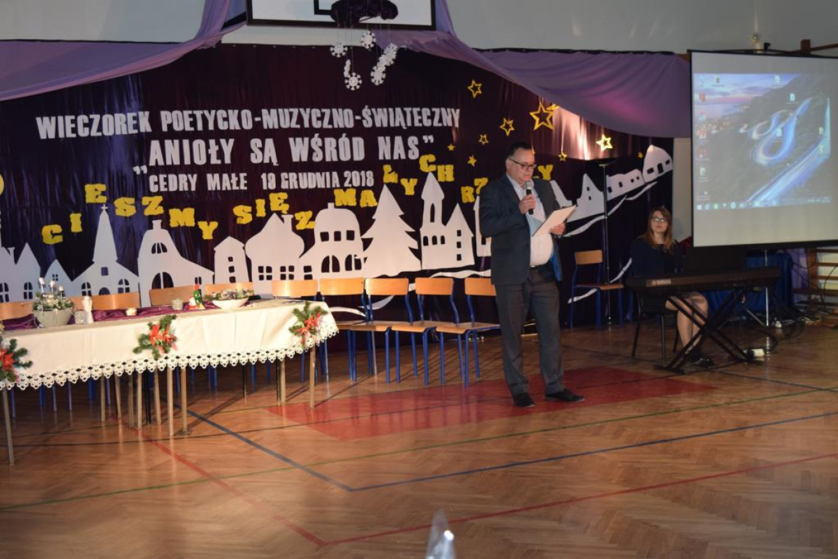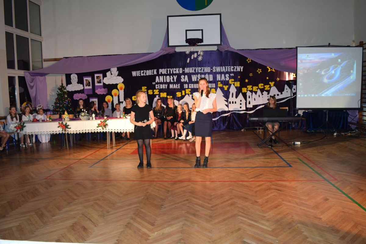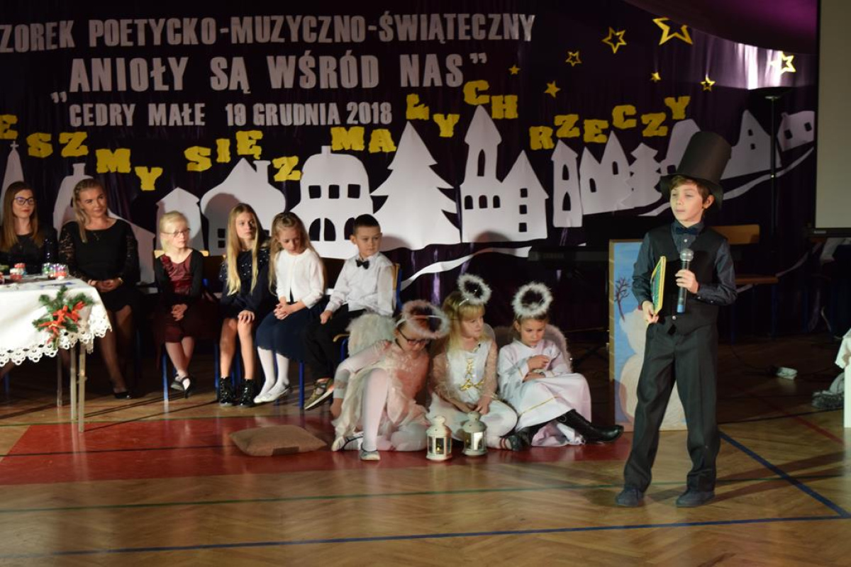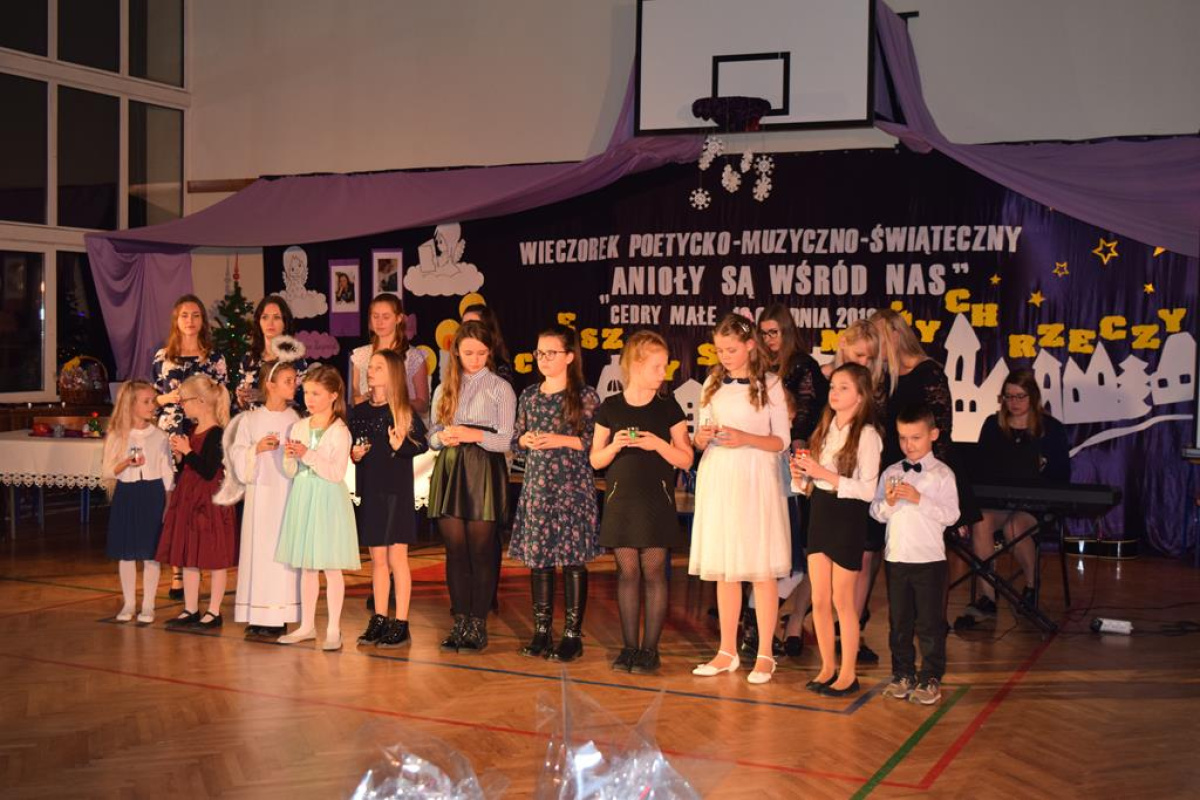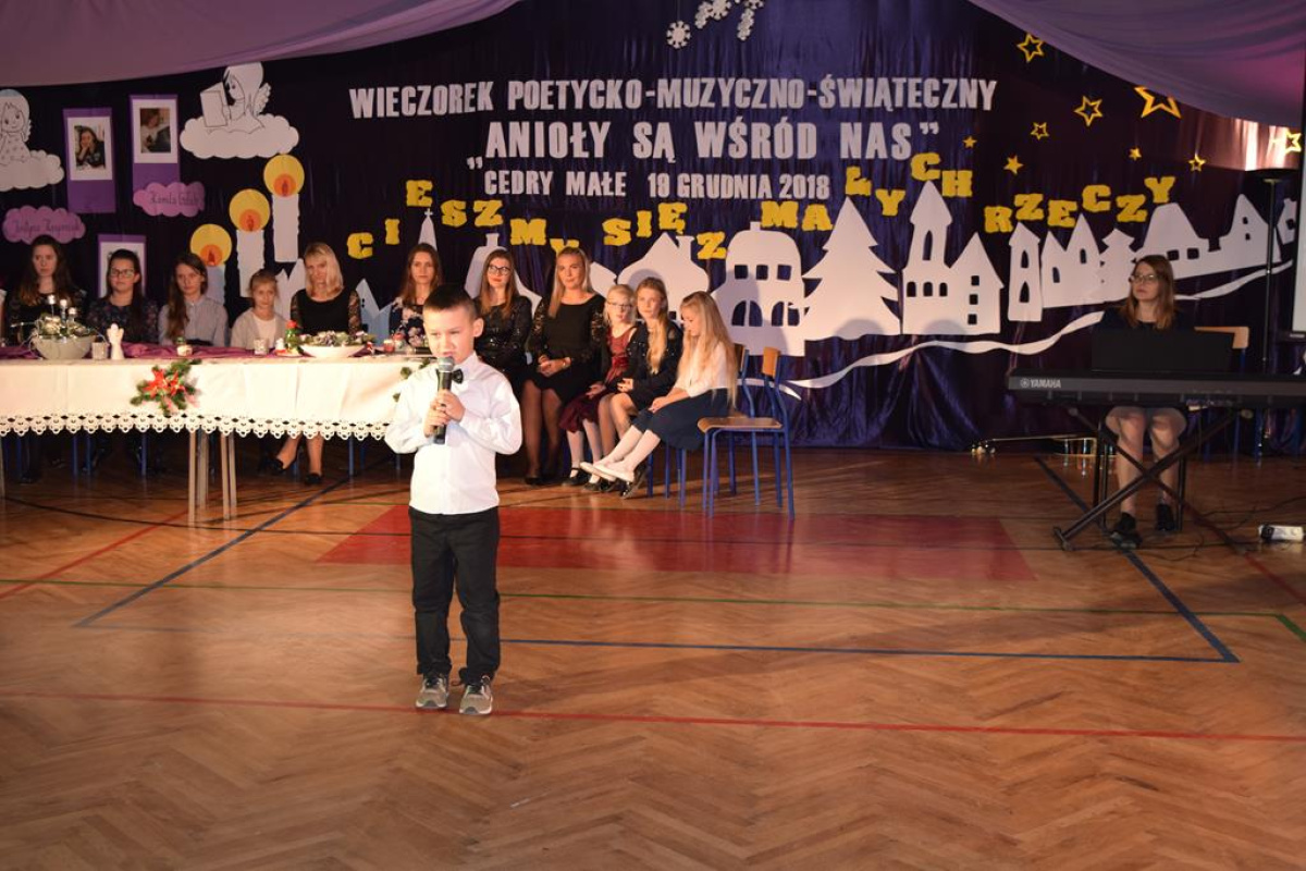 Dnia 19 grudnia 2018 r. o godz. 17.00 w Szkole Podstawowej w Cedrach Małych uczniowie, grono pedagogiczne wraz z zaproszonymi gośćmi, jak co roku spotkali się na wieczorku poetycko - muzycznym. W atmosferze Świąt Bożego Narodzenia wspominano osoby, które odeszły na zawsze, zwłaszcza z życia społeczności szkolnej - uczennice, nauczycieli oraz pracowników placówki.