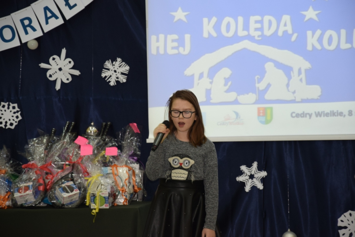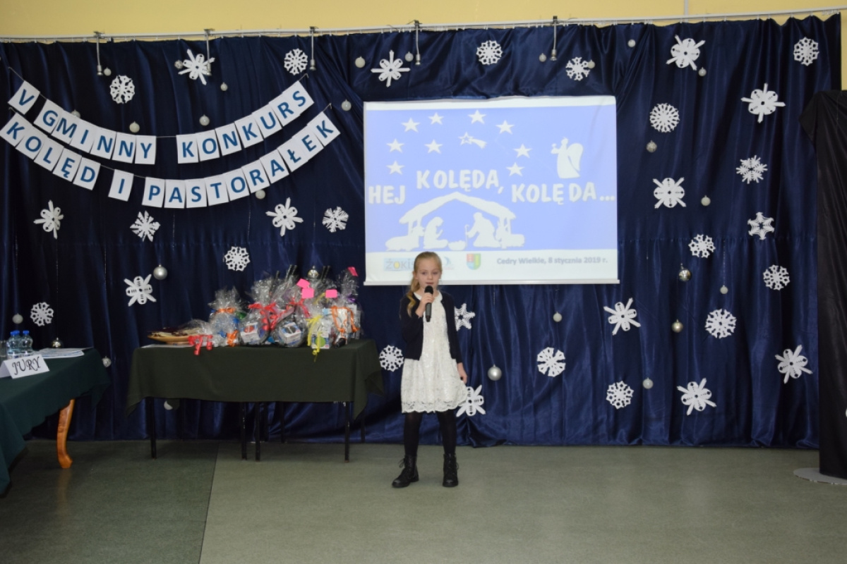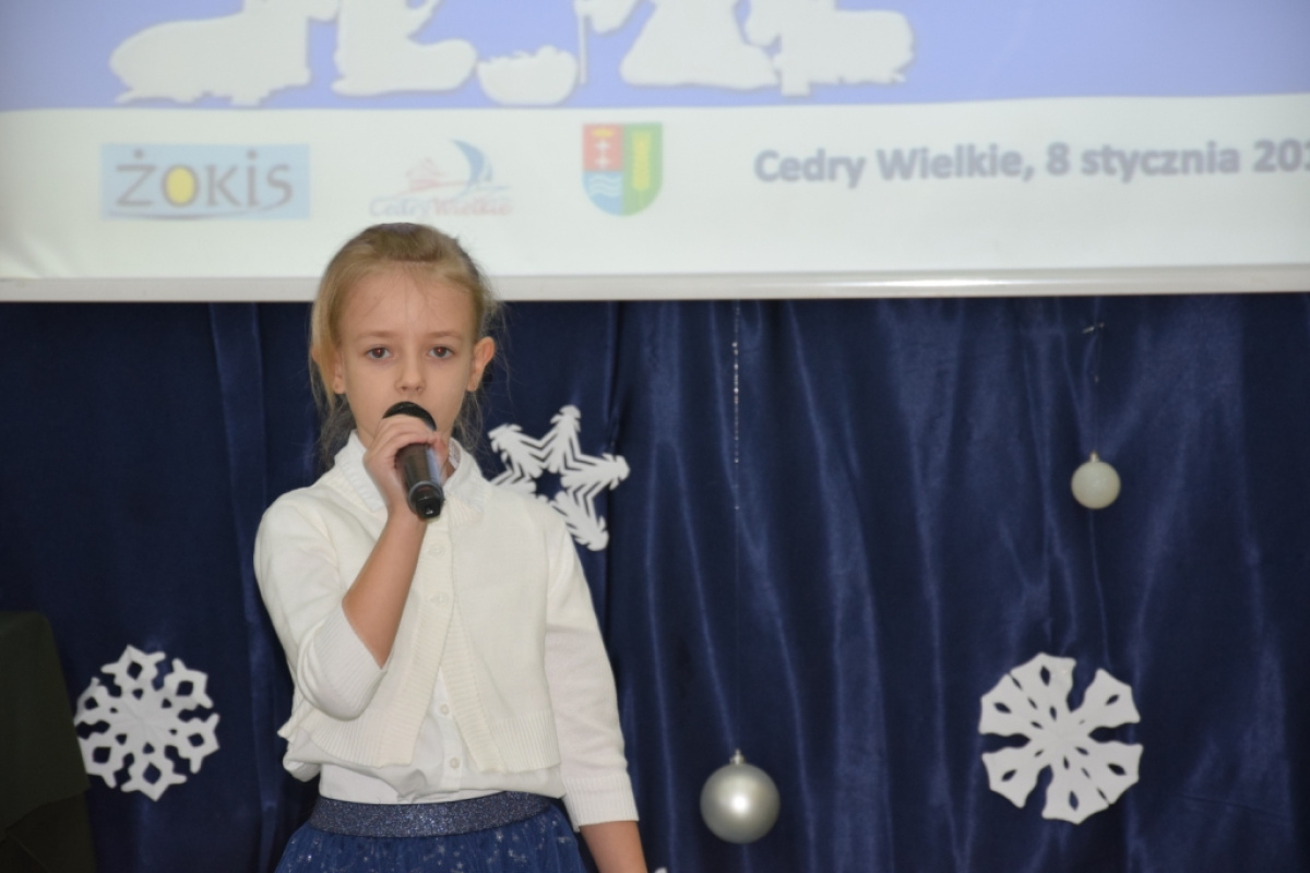 Jury oceniało umiejętności wokalne, dobór repertuaru do wieku uczestnika, interpretacja piosenki, aranżacje utworu, oryginalność wykonawczą, muzykalność oraz ogólny wyraz artystyczny. Uczestnicy otrzymali pamiątkowe dyplomy oraz słodki poczęstunek, a zwycięzcy również nagrody rzeczowe, ufundowane przez Pana Janusza Golińskiego - Wójta Gminy Cedry Wielkie. Ponadto, gościnnie wystąpiły Zuzanna i Maria Koszałka, które umiliły czas oczekiwania na wyniki konkursu tematycznymi występami wokalnymi.