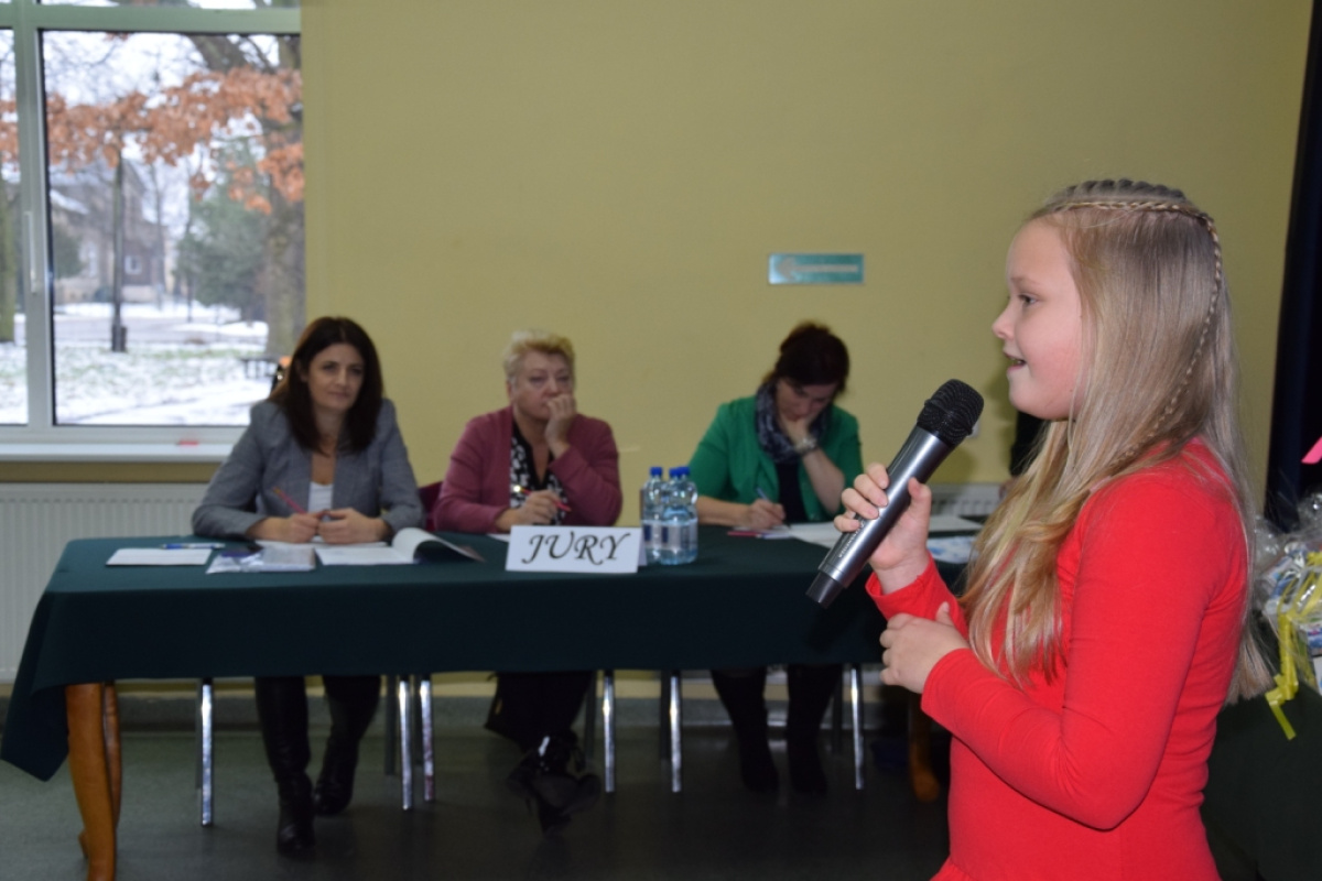 W konkursie udział wzięło 18 wykonawców ze wszystkich szkół z terenu naszej gminy. Uczestnicy zostali podzieleni na 3 kategorie wiekowe: uczniowie klas I-III, uczniowie klas IV - VI oraz uczniowie klas VII - VIII i gimnazjum. Imprezę poprowadziła Karina Tymoszuk - pracownik ŻOKiS.
