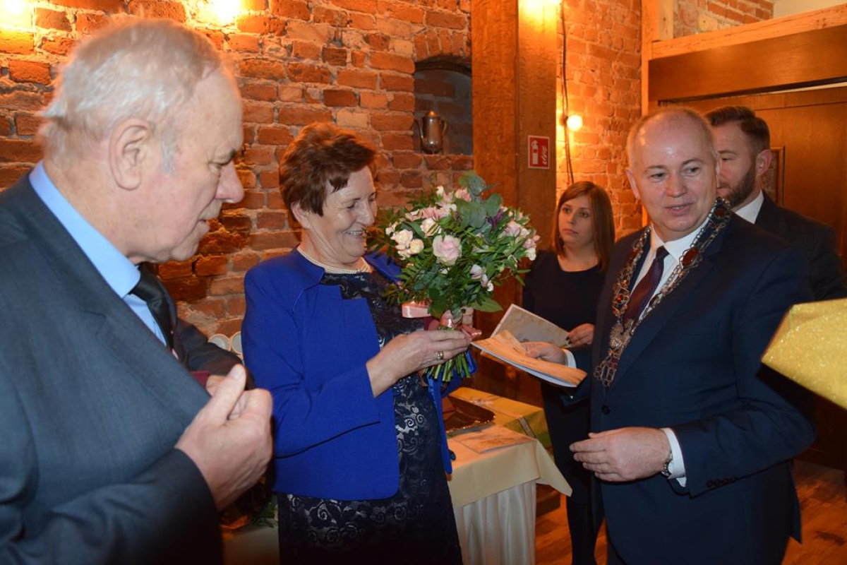 Pan Wójt złożył dostojnym Jubilatom serdeczne gratulacje, życząc im dużo zdrowia i dalszych szczęśliwych lat pożycia. Życzenia i słowa uznania za wspólnie przeżyte lata przekazali także Wicemarszałek oraz Ksiądz Dziekan. Szanowni Jubilaci wraz z życzeniami otrzymali bukiety kwiatów oraz drobne prezenty. Wszyscy uczestnicy „Balu Seniora” odśpiewali Jubilatom uroczyste „100 lat”, a pamiątkowe zdjęcia utrwaliły na zawsze tę wzruszającą chwilę. Pragniemy przekazać Wszystkim Małżonkom raz jeszcze najszczersze gratulacje i życzenia długich, jeszcze piękniejszych lat w zdrowiu, przychylności losu i wzajemnej miłości.