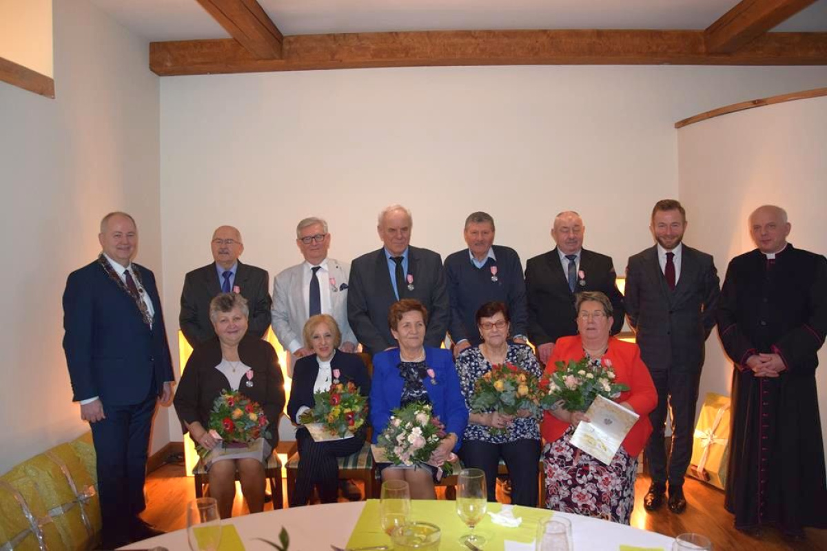 Dnia 2 lutego br. podczas dorocznego Balu Seniora, który odbył się w restauracji „Cedrowy Dworek” miało miejsce niezwykłe wydarzenie, a mianowicie 6 par z terenu naszej gminy świętowało Jubileusz 50-lecia pożycia małżeńskiego. Jedna z par z powodów losowych nie mogła przybyć osobiście na uroczystość. Tym Jubilatom medale zostały wręczone osobiście przez Wójta Gminy w ich domu. Aktu dekoracji medalami „Za długoletnie pożycie małżeńskie”, w imieniu Prezydenta RP dokonał Wójt Gminy Janusz Goliński, przy udziale Wicemarszałka Województwa Pomorskiego Ryszarda Świlskiego oraz Księdza Dziekana Janusza Mathea.