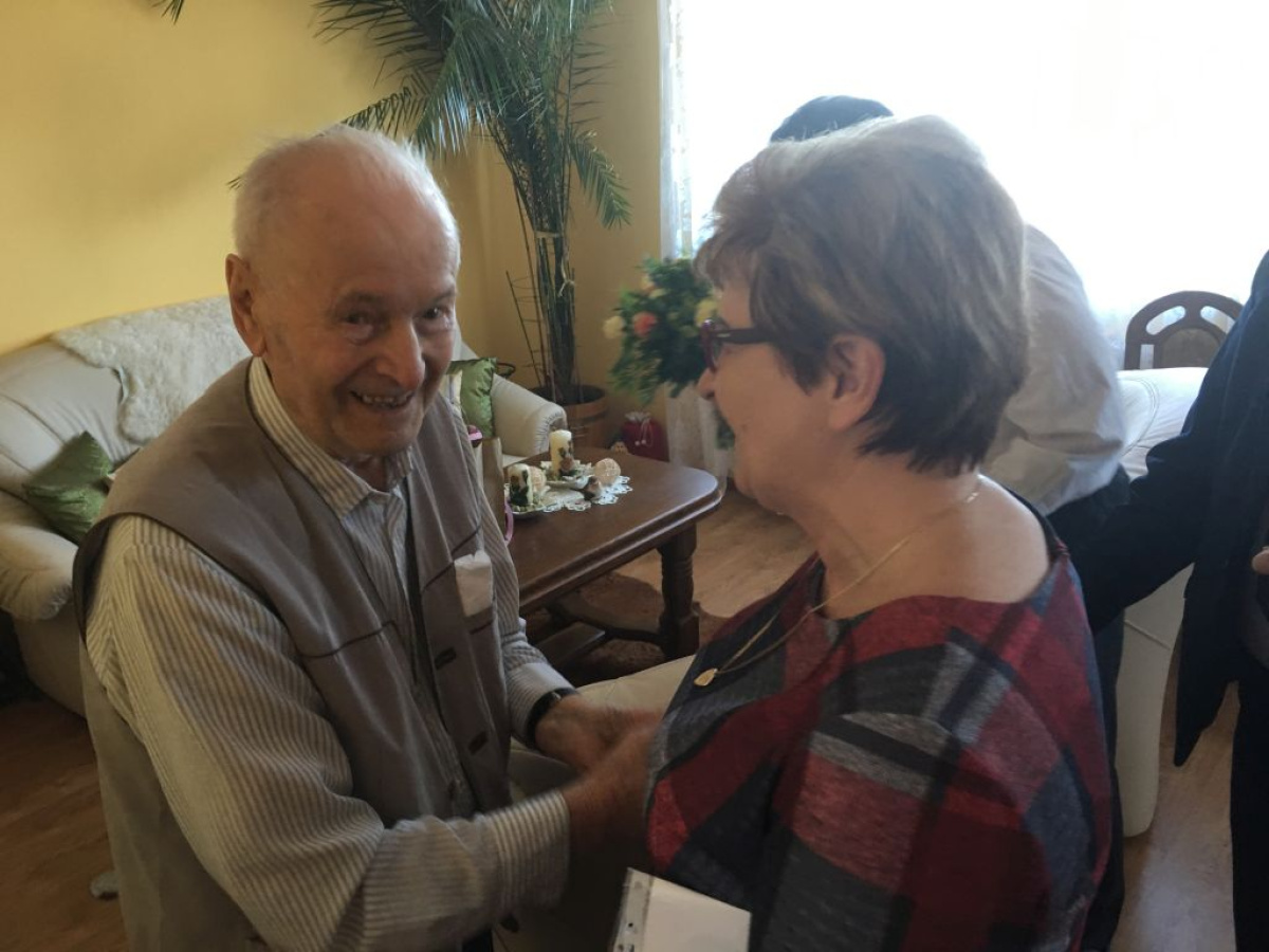 W dniu 27.02.2019 r. Pan Czesław Świątek zamieszkały w Cedrach Wielkich obchodził swoje 91 urodziny. Z tej okazji najbliższa rodzina Jubilata zorganizowała przyjęcie urodzinowe w dniu 02.03.2019 r. Pan Janusz Goliński - Wójt Gminy Cedry Wielkie wraz z Kierownik Gminnego Ośrodka Pomocy Społecznej w Cedrach Wielkich Grażyną Bereza odwiedzili szanownego Jubilata z drobnym upominkiem i bukietem świeżych kwiatów.