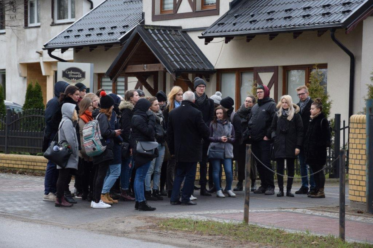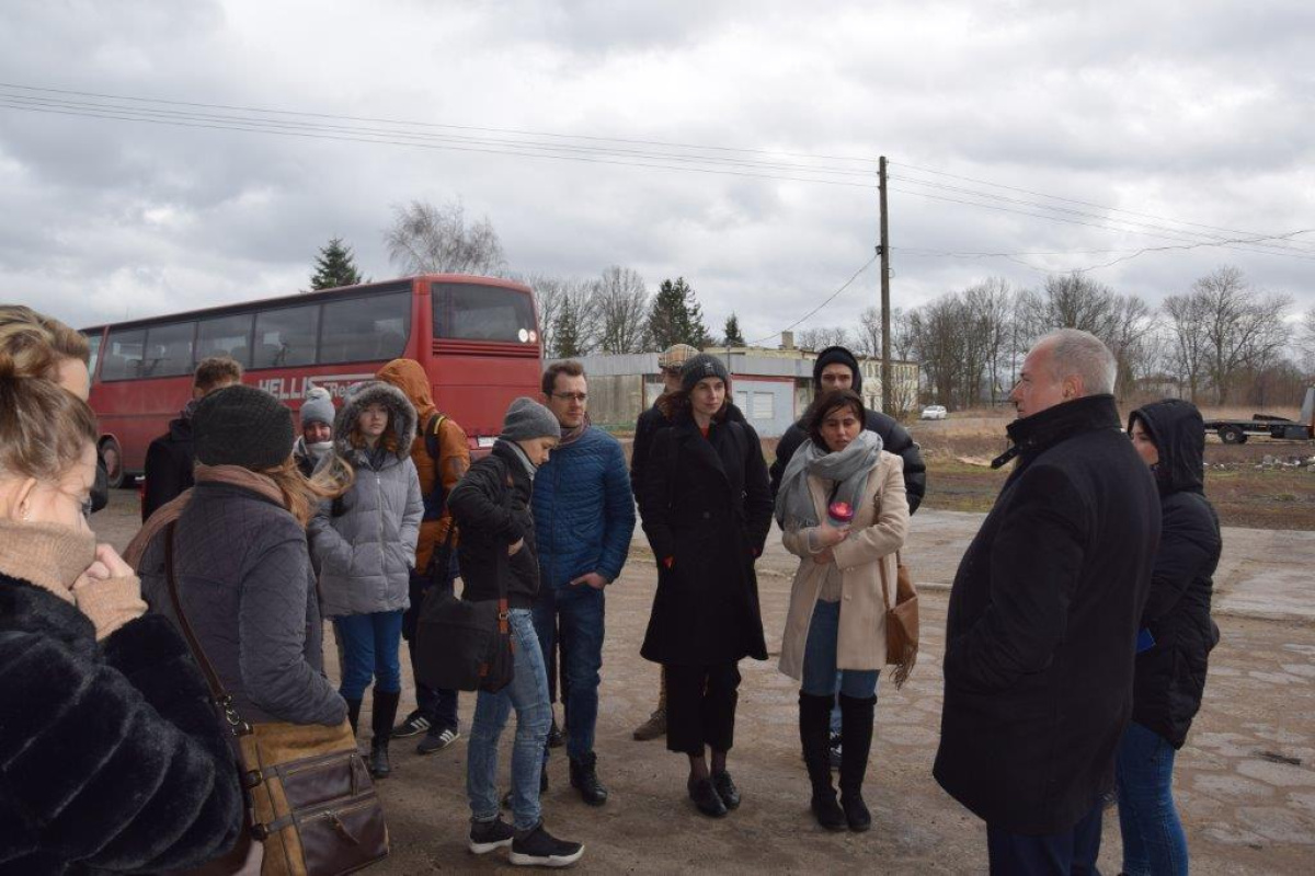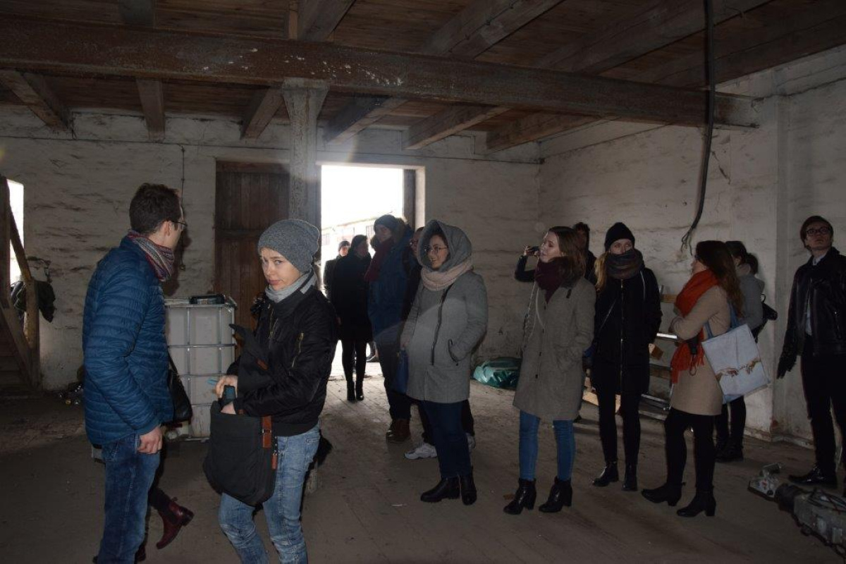 Wizyta studentów związana jest z konkursem PN. "BADANIE MOŻLIWOŚCI PRZEKSZTAŁCEŃ TERENU DAWNEJ GMINNEJ SPÓŁDZIELNI „SCH” W MIEJSCOWOŚCI CEDRY WIELKIE”.