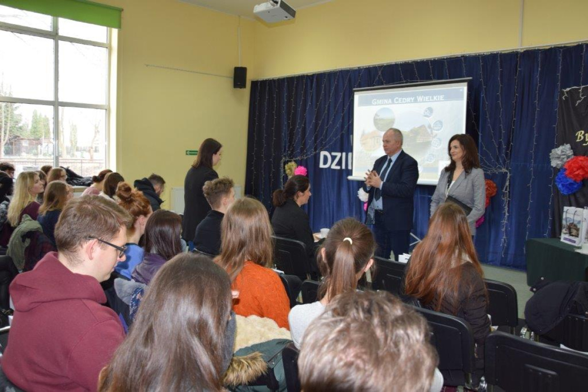 W dniu 8 marca 2019 r. na zaproszenie Pana Janusza Golińskiego, Gminę Cedry Wielkie odwiedziła 60 osobowa grupa studentów z wydziału architektury, kierunek: architektura Politechniki Gdańskiej, pod opieką wykładowcy mgr inż. arch. Marty Golińskiej. W trakcie wizyty, w której uczestniczyli m.in. Janusz Goliński - Wójt Gminy Cedry Wielkie, Pani Justyna Słowińska - Przewodnicząca Rady Gminy Cedry Wielkie, Pani Elżbieta Drozd - Inspektor ds. gospodarki przestrzennej Urzędu Gminy Cedry Wielkie, studenci zostali oprowadzeni po terenie dawnej Gminnej Spółdzielni w miejscowości Cedry Wielkie.