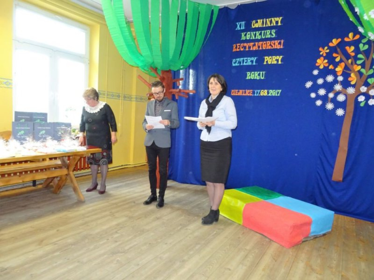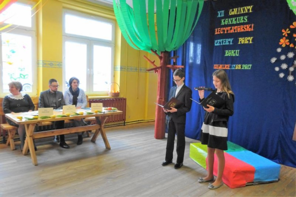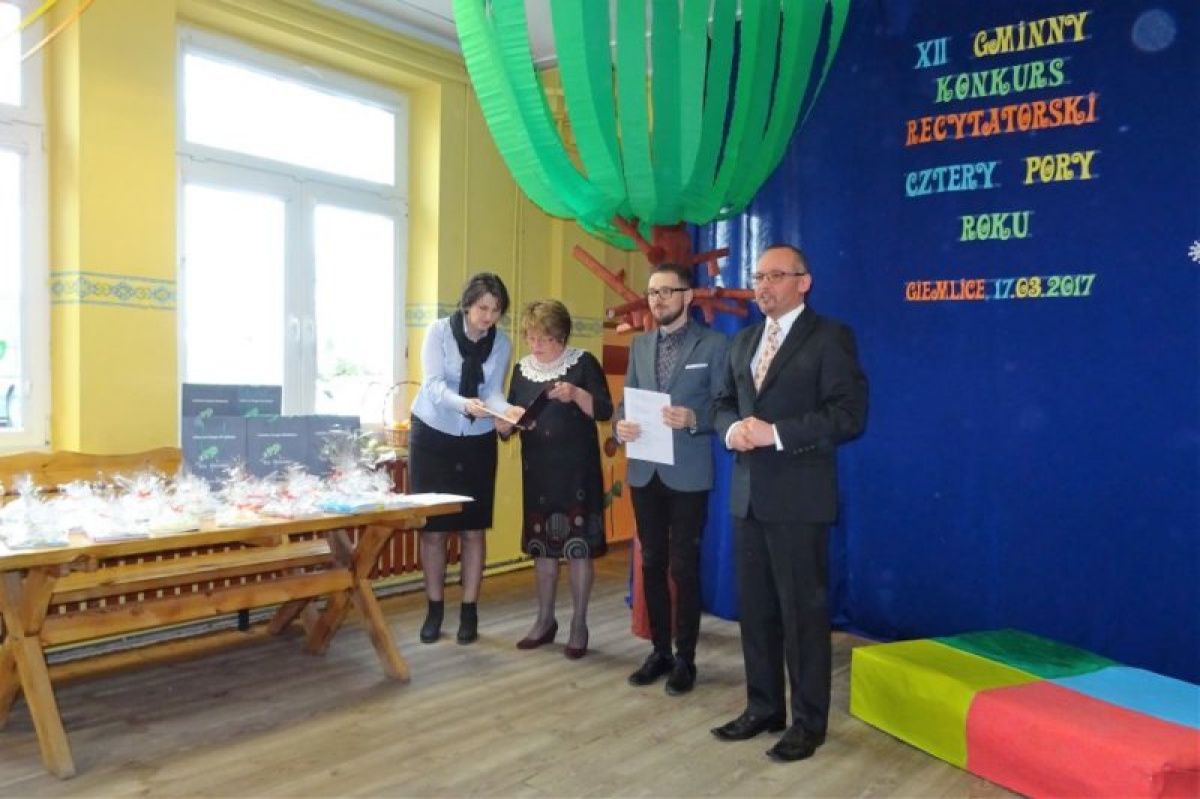 W piątek 17 marca br. w Szkole Podstawowej im. Jana Brzechwy w Giemlicach już po raz dwunasty odbył się Gminny Konkurs Recytatorski. Hasłem przewodnim i tematem konkursu były „Cztery pory roku”.