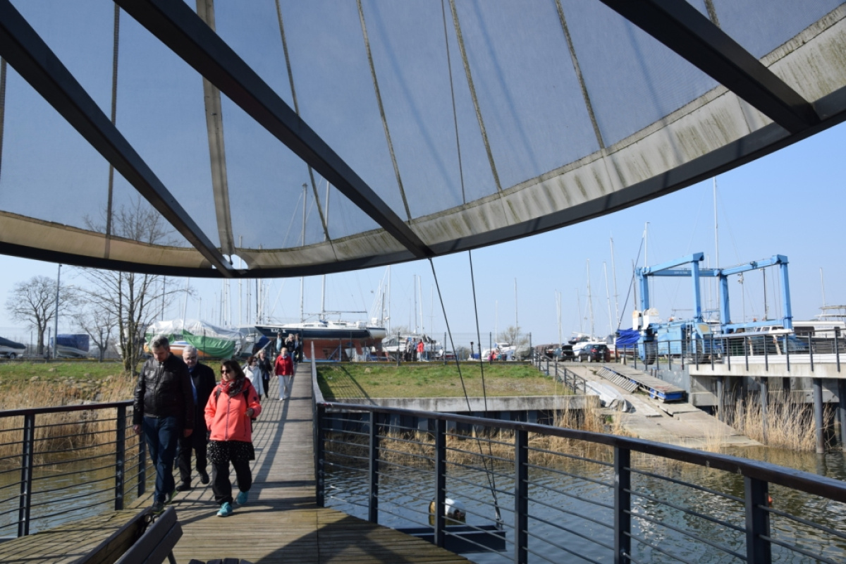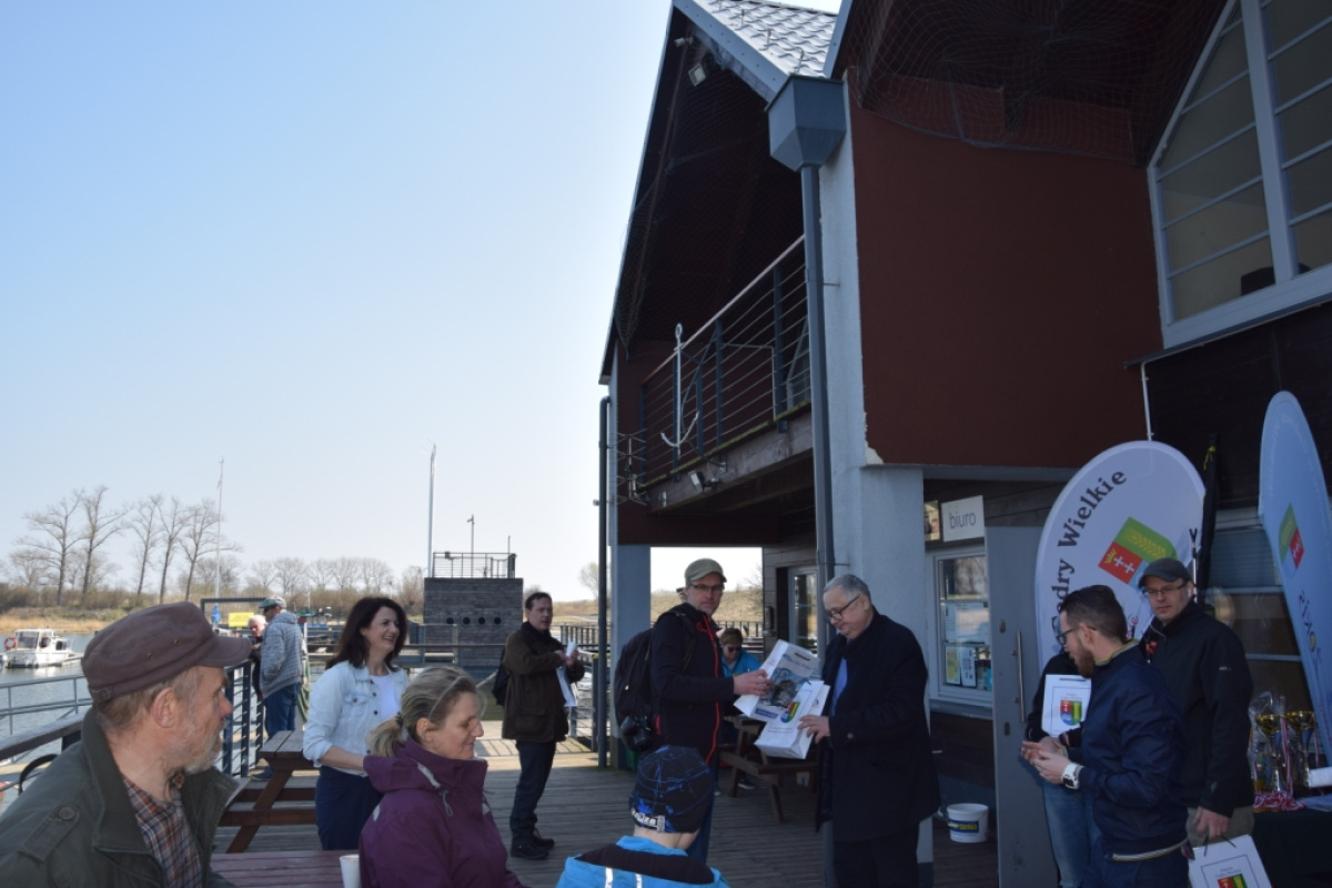 W sobotę 06 kwietnia 2019 r. teren Gminy Cedry Wielkie odwiedziła 20-osobowa grupa miłośników Żuław. W planie wycieczki znalazły się obiekty z terenu naszej gminy w tym m.in. Przystań Żeglarska w Błotniku. Pan Łukasz Żarna - Dyrektor ŻOKiS i komandor Stowarzyszenia Gdański Klub Morski „CEDRUS” podczas wizyty na Przystani oprowadził uczestników po obiekcie, przedstawił historię powstania oraz sposób jego funkcjonowania.