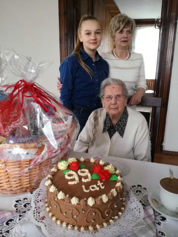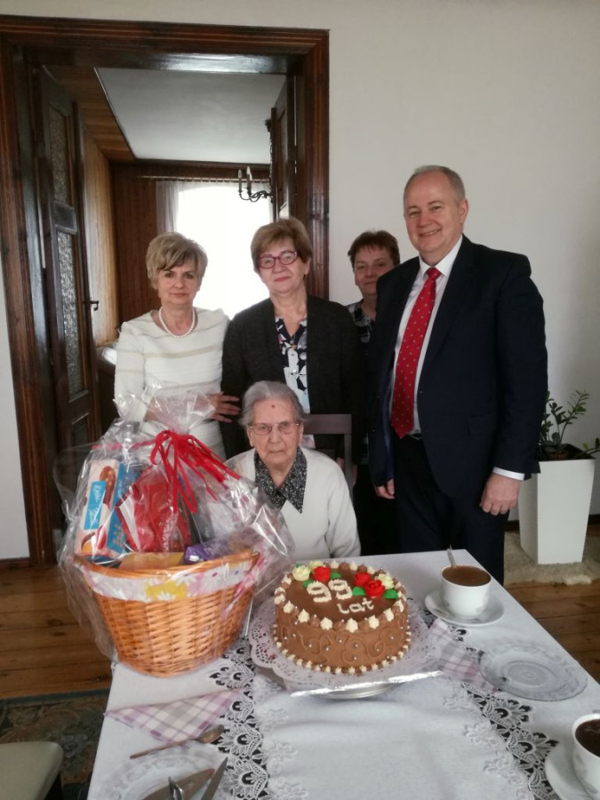 Pani Władysława Wojdyr zamieszkała w Trutnowach 03 kwietnia 2019 r., obchodziła 99 rocznicę urodzin. Z tej okazji w dniu 11.04.2019 r., Pan Janusz Goliński - Wójt Gminy Cedry Wielkie oraz Pani Grażyna Bereza - Kierownik Gminnego Ośrodka Pomocy Społecznej udali się do szanownej Jubilatki z kwiatami oraz okolicznościowym upominkiem, składając serdeczne życzenia zdrowia, szczęścia oraz wszelkiej pomyślności w imieniu własnym oraz mieszkańców gminy.