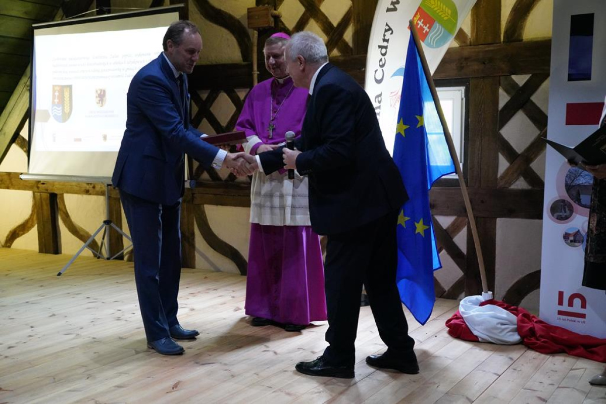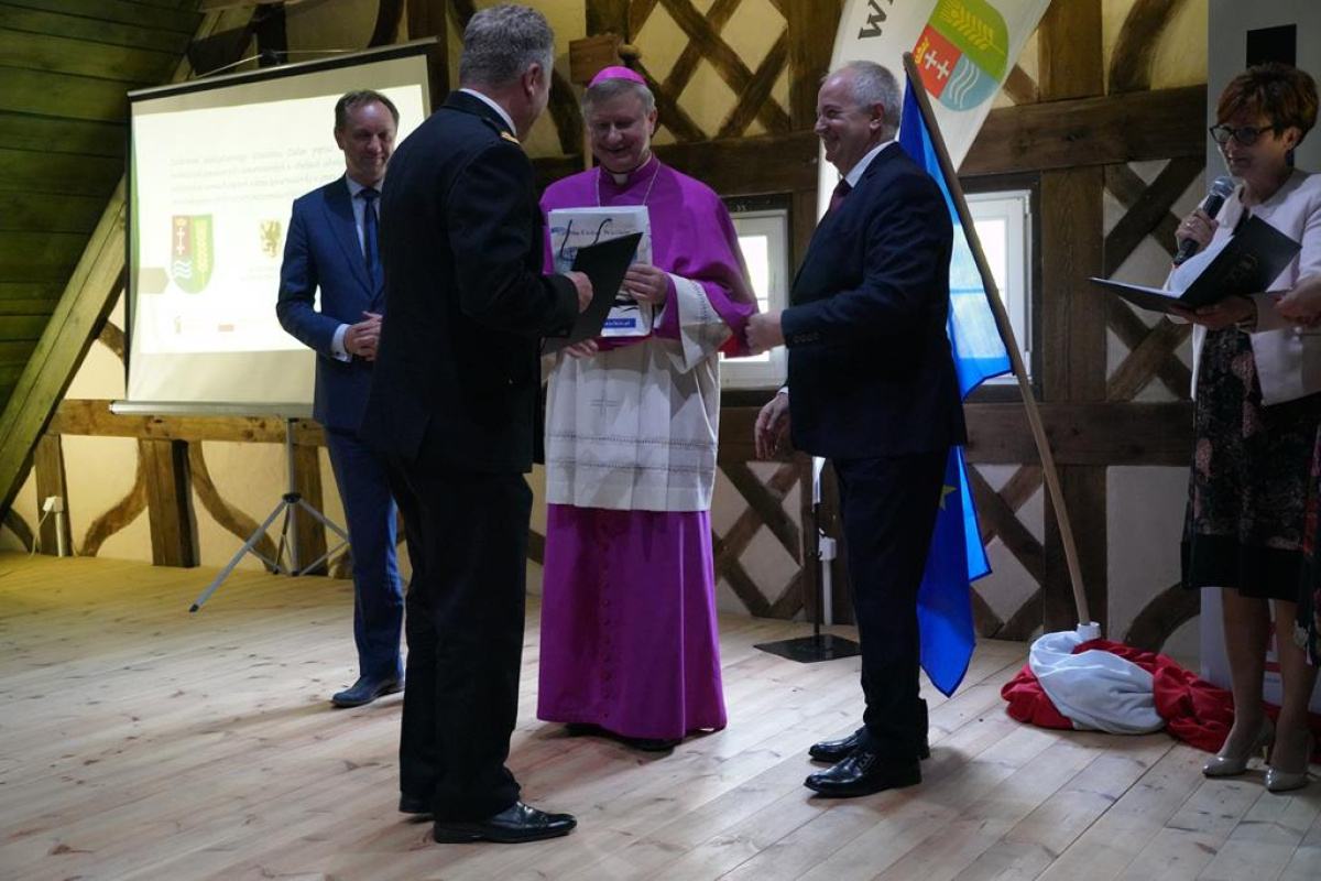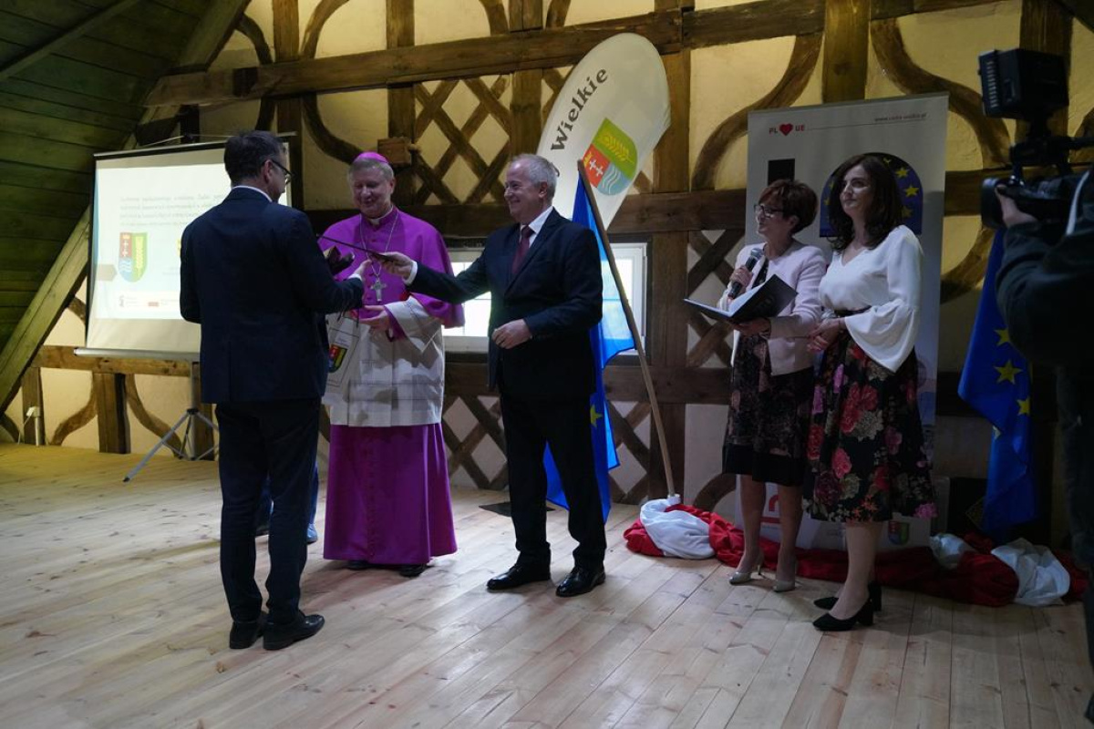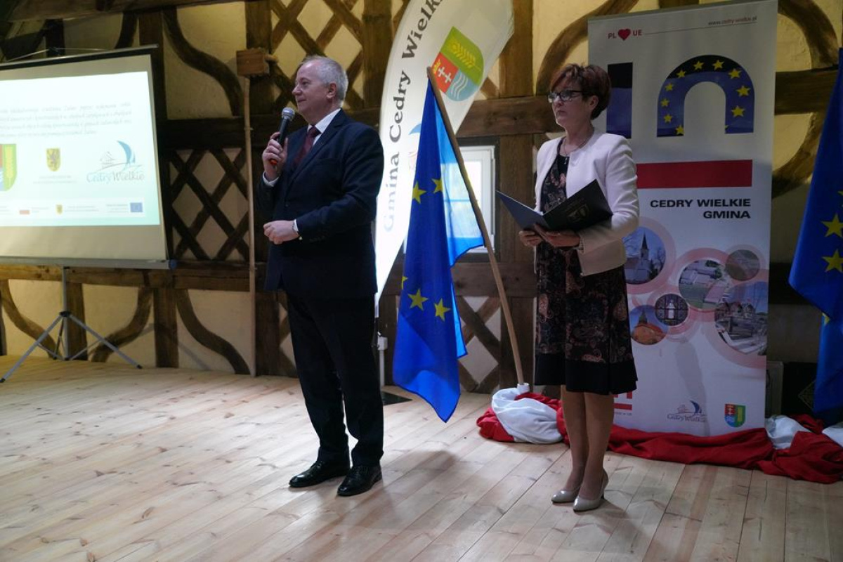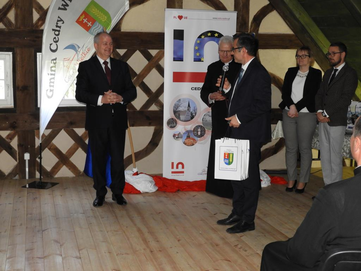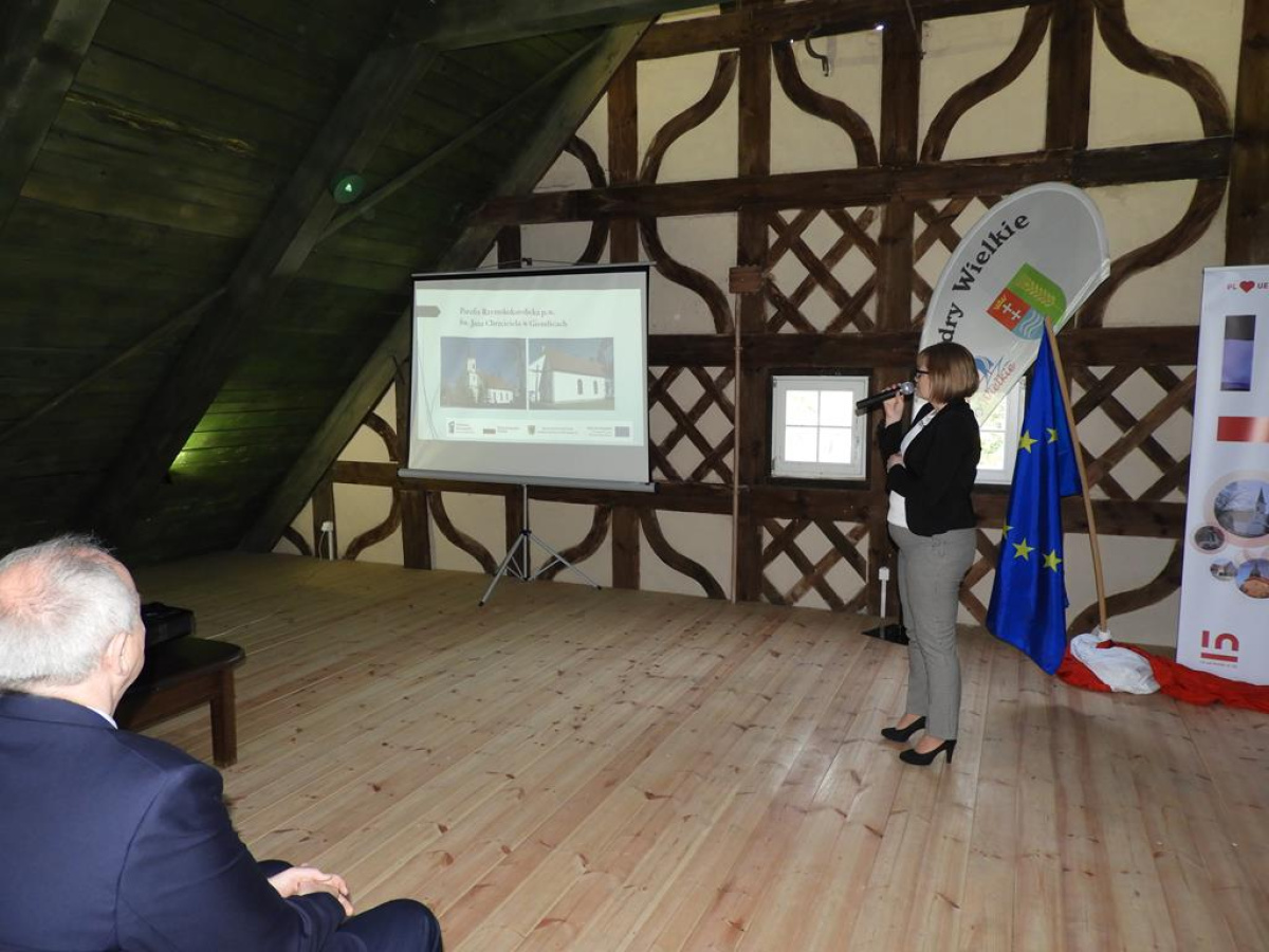 Uroczyste zakończenie odbyło się w domu Podcieniowym w Miłocinie, gdzie zaprezentowano poszczególne etapy projektu jak i efekt finalny. Na zakończenie uroczystości Wójt Gminy Janusz Goliński złożył podziękowania zaproszonym gościom za udział w wydarzeniu, a w szczególności tym którzy przyczynili się do prawidłowej realizacji projektu.