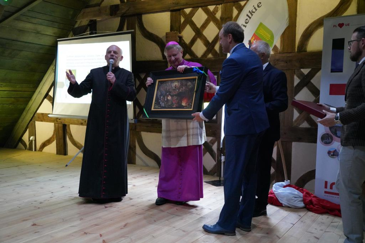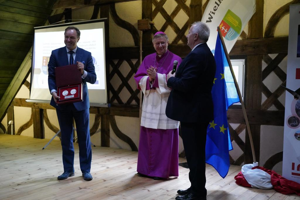 Oficjalne podsumowanie projektu „Zachowanie wielokulturowego dziedzictwa Żuław poprzez wykonanie robót budowlanych, remontowych i konserwatorskich w obiektach zabytkowych i obiektach położonych na terenach objętych ochroną konserwatorską w gminach żuławskich oraz stworzenie spójnej oferty turystycznej promującej tożsamość Żuław” rozpoczęło się wizytą gości w obiektach sakralnych, gdzie dokonano poświęcania pamiątkowych tablic.