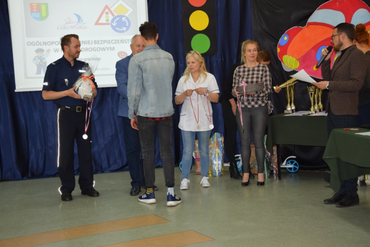 W komisji zasiedli przedstawiciele Policji Powiatowej z Pruszcza Gdańskiego, opiekę medyczną sprawował przedstawiciel firmy ETERMED w osobie Pani Ireny Kaczmarskiej. Ponadto swoją obecnością zaszczycili nas: Pani Elżbieta Prymaczek - Sekretarz Gminy Cedry Wielkie, Pani Sylwia Makrucka - Kierownik Referatu Oświaty Kultury i Sportu Gminy Cedry Wielkie, nauczyciele i wychowawcy ze szkół z terenu gminy.