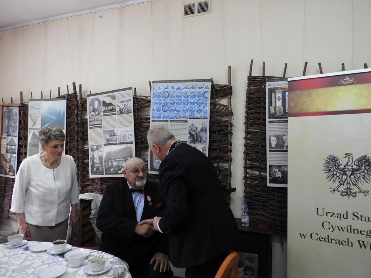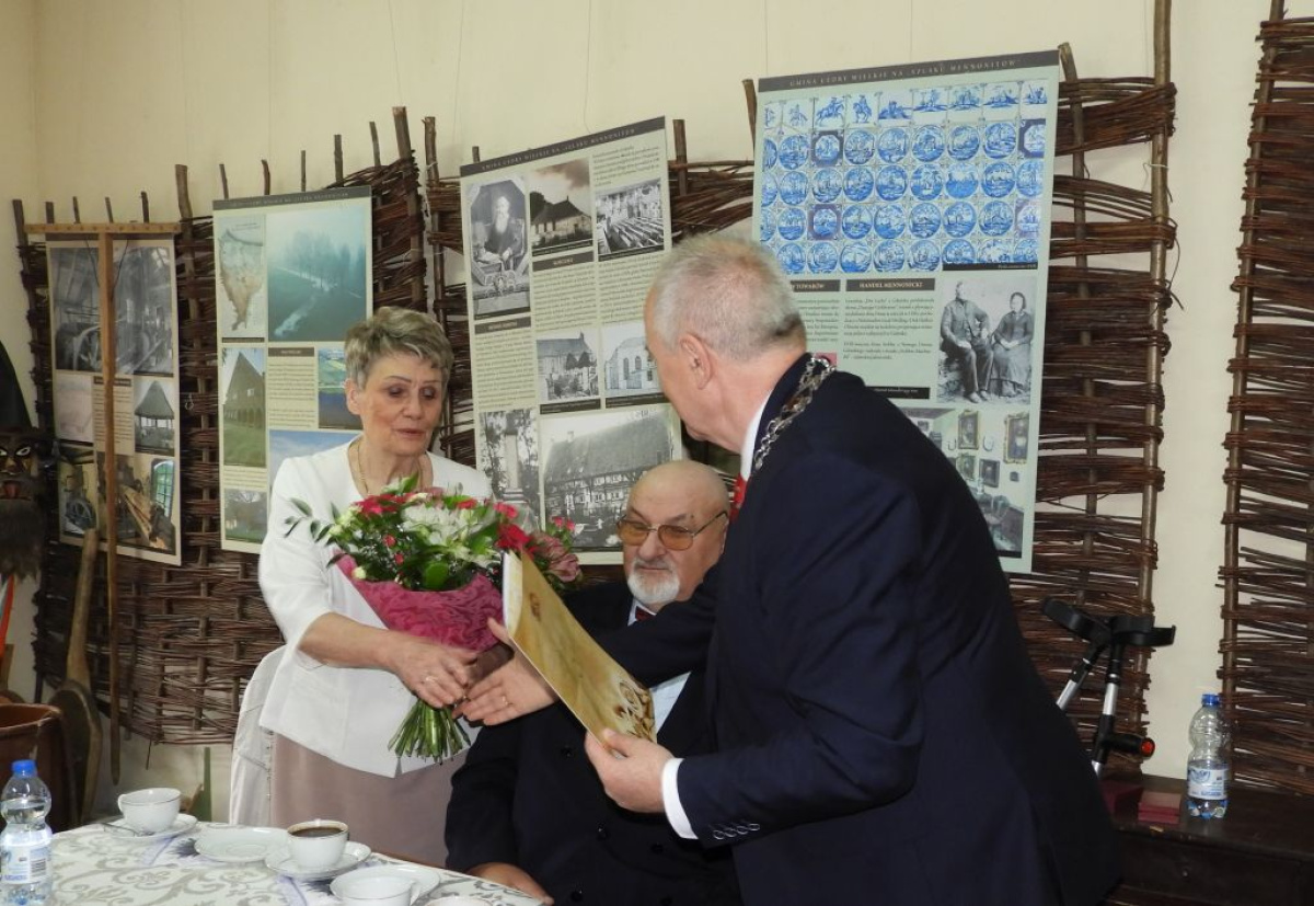 Oficjalna uroczystość miała miejsce w dniu 25 maja br. w sali Żuławskiego Ośrodka Kultury i Sportu w Cedrach Wielkich z udziałem najbliższych członków rodziny oraz Wójta Gminy Janusza Golińskiego, który złożył Jubilatom serdeczne gratulacje oraz wręczył pamiątkowy medal, upominek oraz kwiaty.