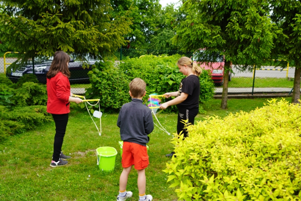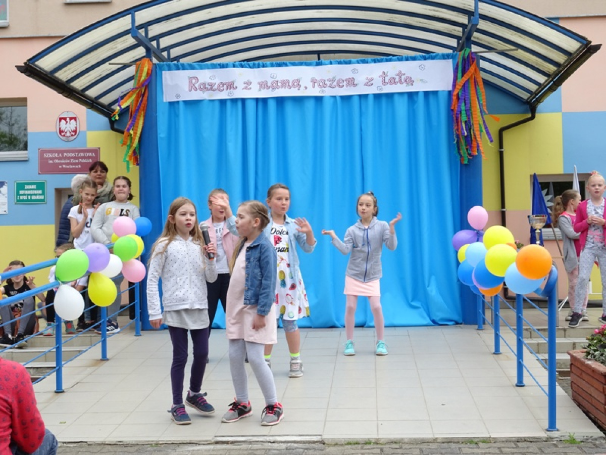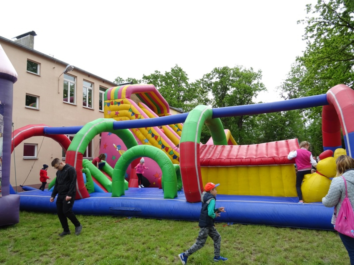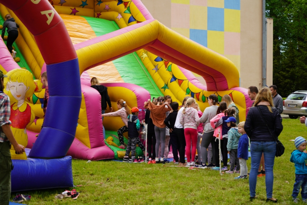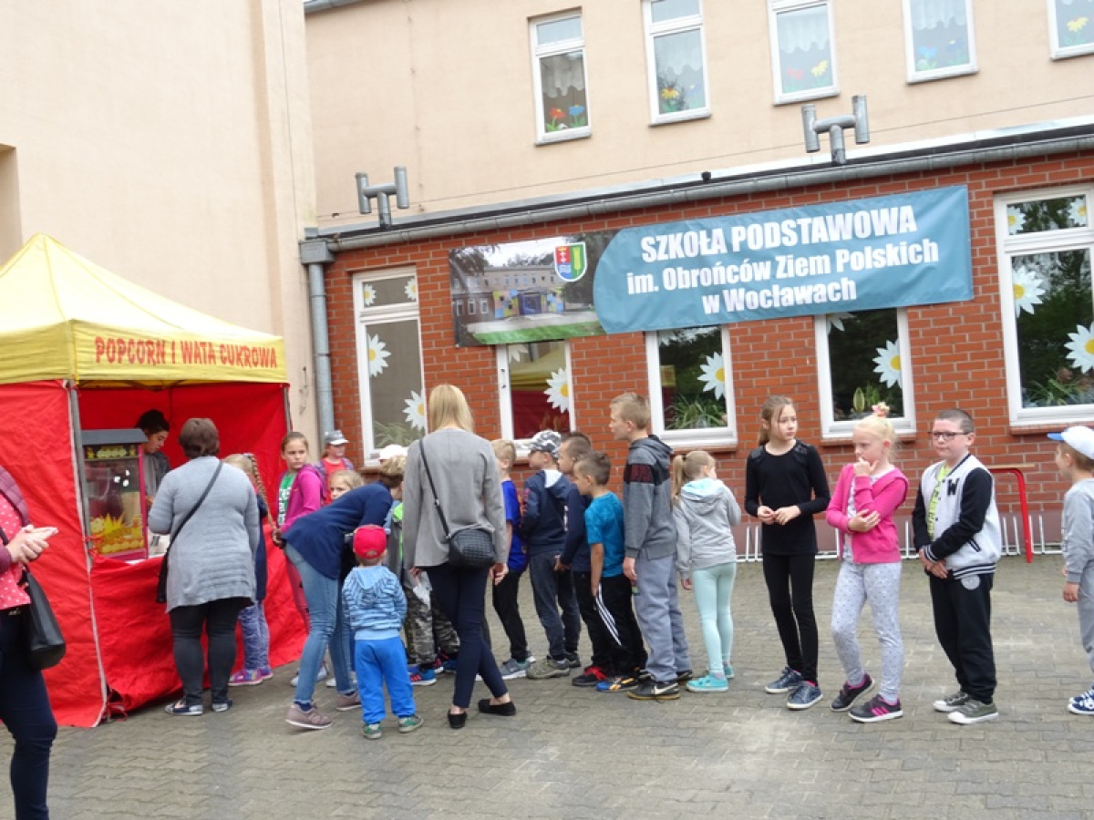 Śmiech, radość, podekscytowanie, zachwyt, przygoda, wrzawa - to tylko część tego, co mama i tata ze swoimi pociechami mogli doświadczyć podczas Festynu Rodzinnego ,,Razem z mamą, razem z tatą”, który odbył się 25 maja b.r. w Szkole Podstawowej w Wocławach. Na dzieci czekało mnóstwo ciekawych atrakcji, konkursów oraz smakołyków. Można było do woli korzystać z dmuchanego placu zabaw, tworzyć ogromne bańki mydlane, czy zajadać się watą cukrową.
