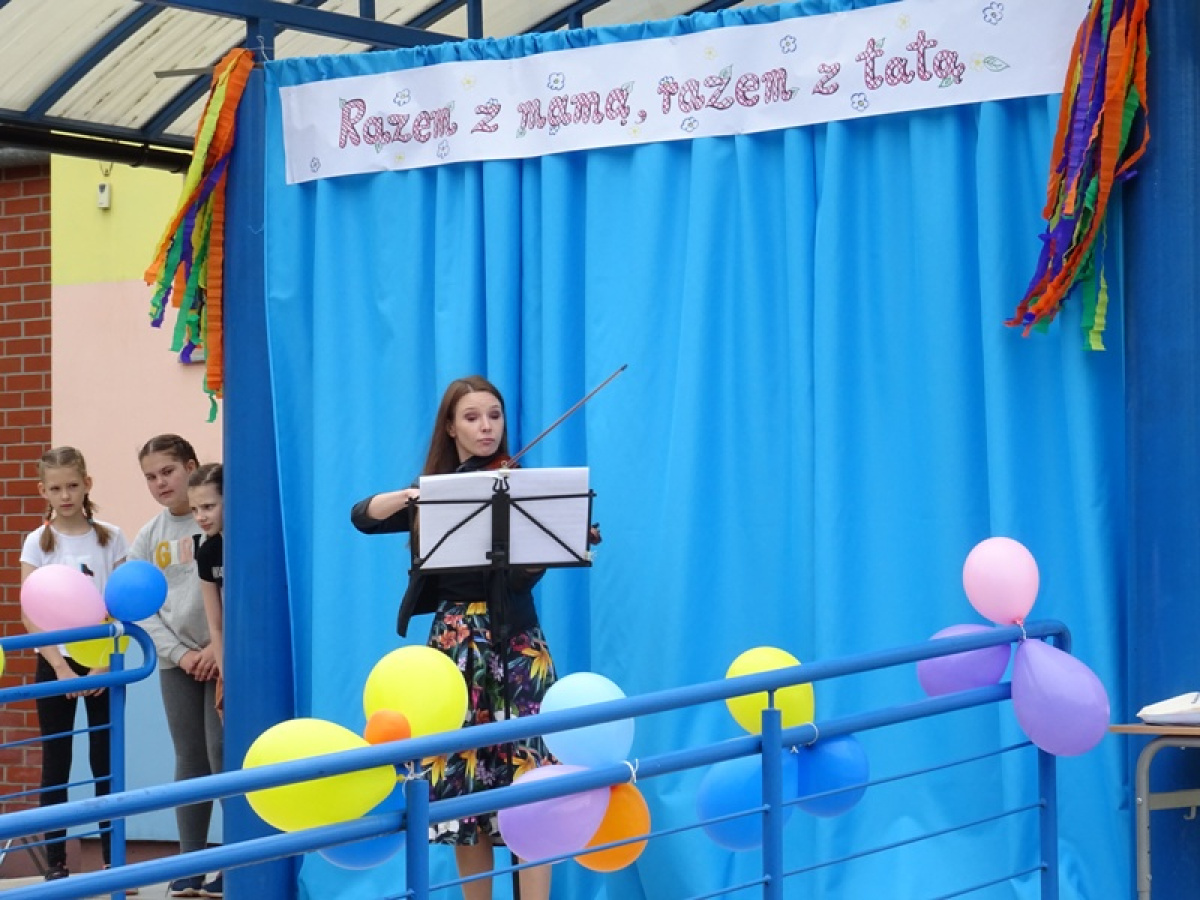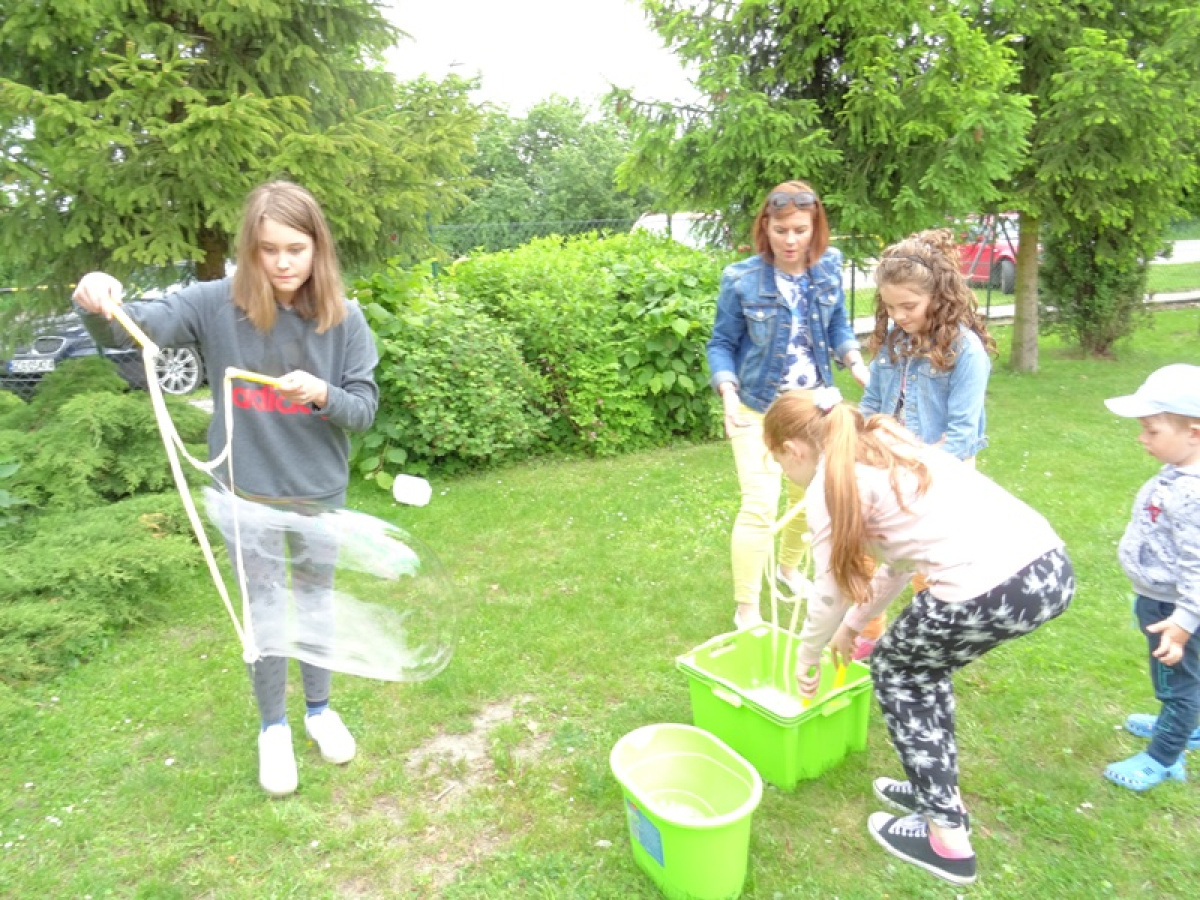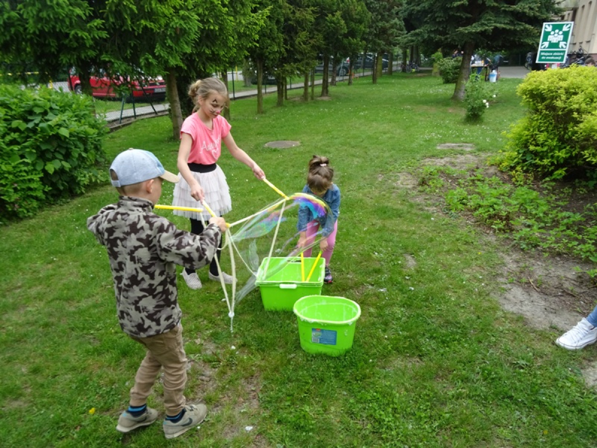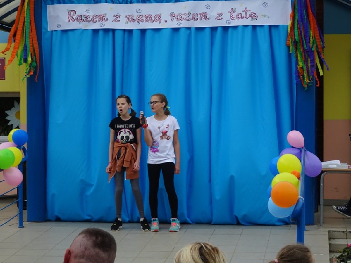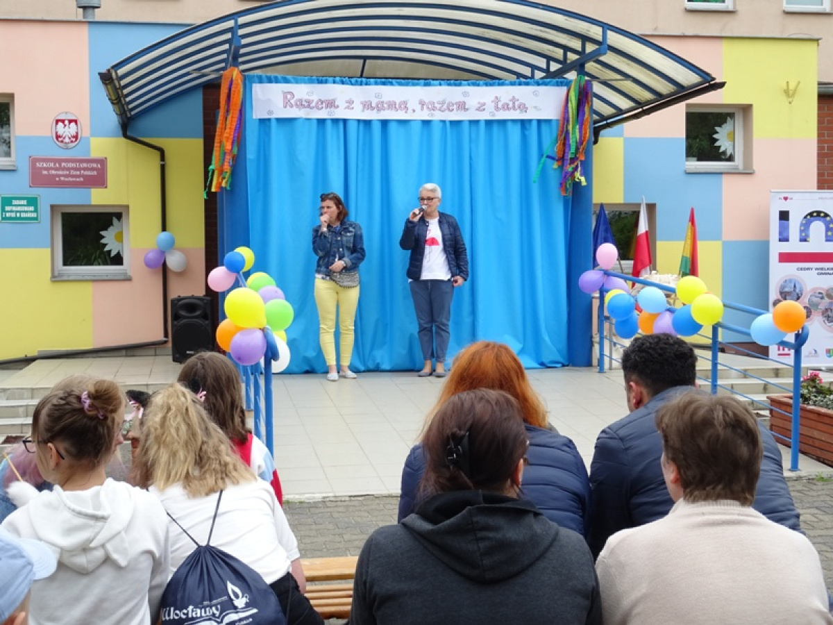 Śmiech, radość, podekscytowanie, zachwyt, przygoda, wrzawa - to tylko część tego, co mama i tata ze swoimi pociechami mogli doświadczyć podczas Festynu Rodzinnego ,,Razem z mamą, razem z tatą”, który odbył się 25 maja b.r. w Szkole Podstawowej w Wocławach. Na dzieci czekało mnóstwo ciekawych atrakcji, konkursów oraz smakołyków. Można było do woli korzystać z dmuchanego placu zabaw, tworzyć ogromne bańki mydlane, czy zajadać się watą cukrową.