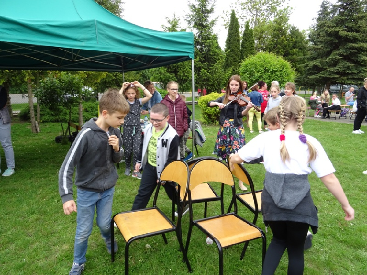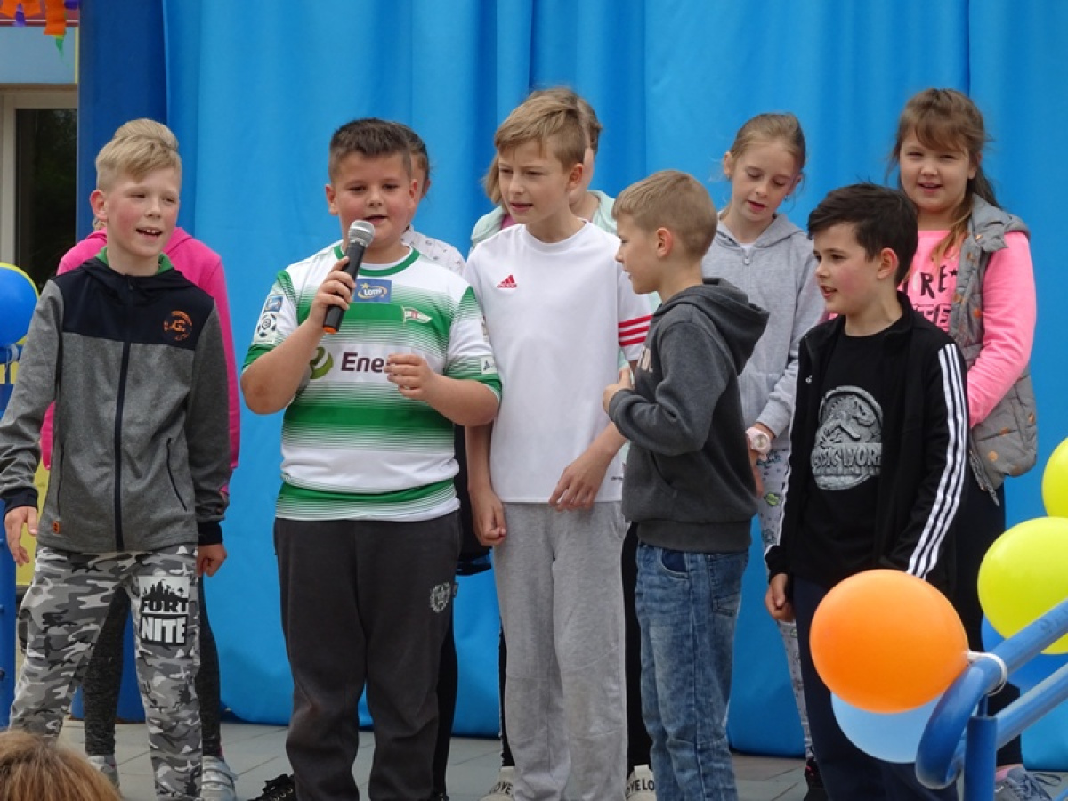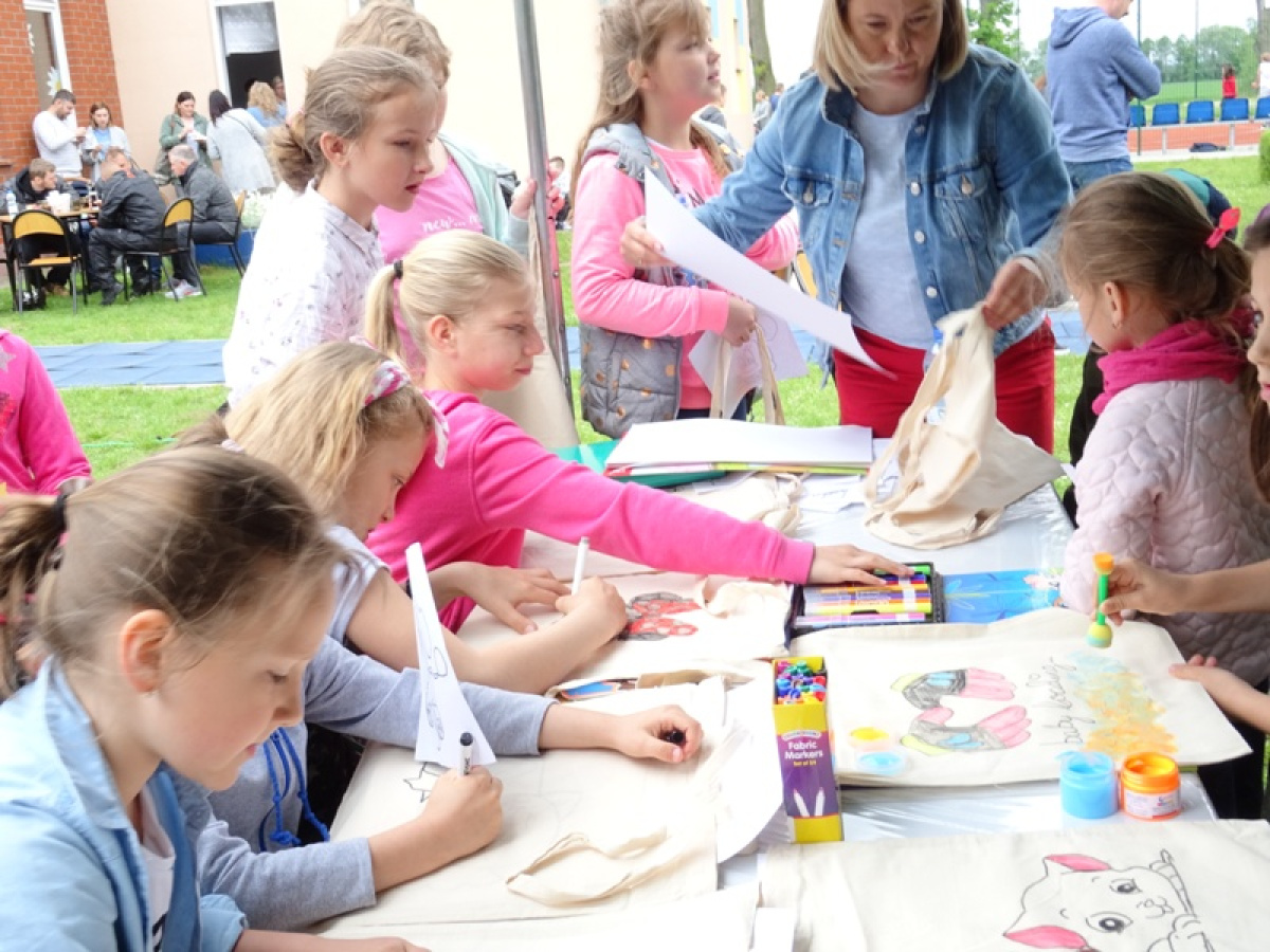 Dużą popularnością cieszyło się stoisko kreatywne, gdzie odbywało się malowanie twarzy, tworzenie prac plastycznych, a także można było wykonać indywidualną torbę na zakupy. Na scenie odbywały się występy artystyczne uczniów oraz nauczyciela muzyki. Emocji dostarczył również pokaz wozów strażackich. Jednym z głównych punktów programu były rozgrywki sportowe w piłkę nożną o Puchar Dyrektora Szkoły, w których udział brały drużyny kl. IV-VIII. Po zaciętych meczach zwycięstwo odnieśli uczniowie klasy siódmej.