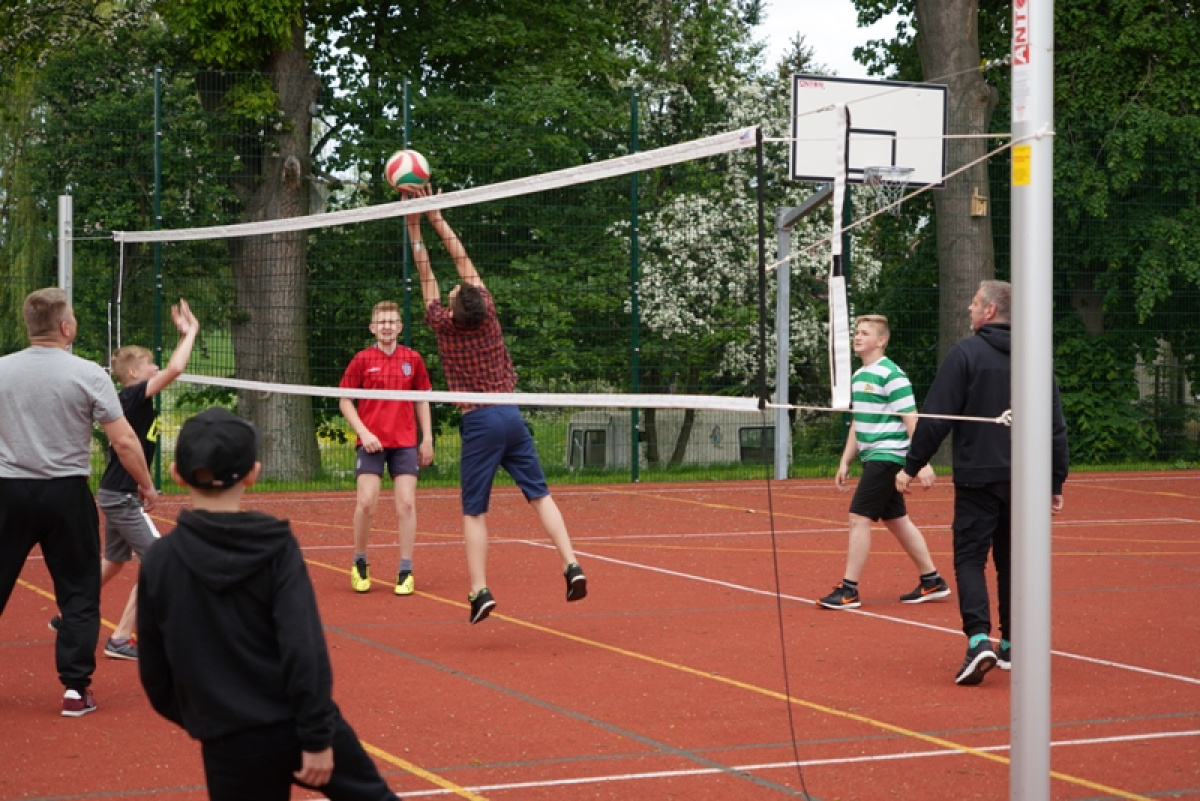 Zadbano też o odpowiedni posiłek. Rada Rodziców wraz z Panią Sołtys Magdaleną Lech przygotowała kiełbaski z grilla, a w szkolnej kawiarence można było skosztować przeróżnych słodkości.