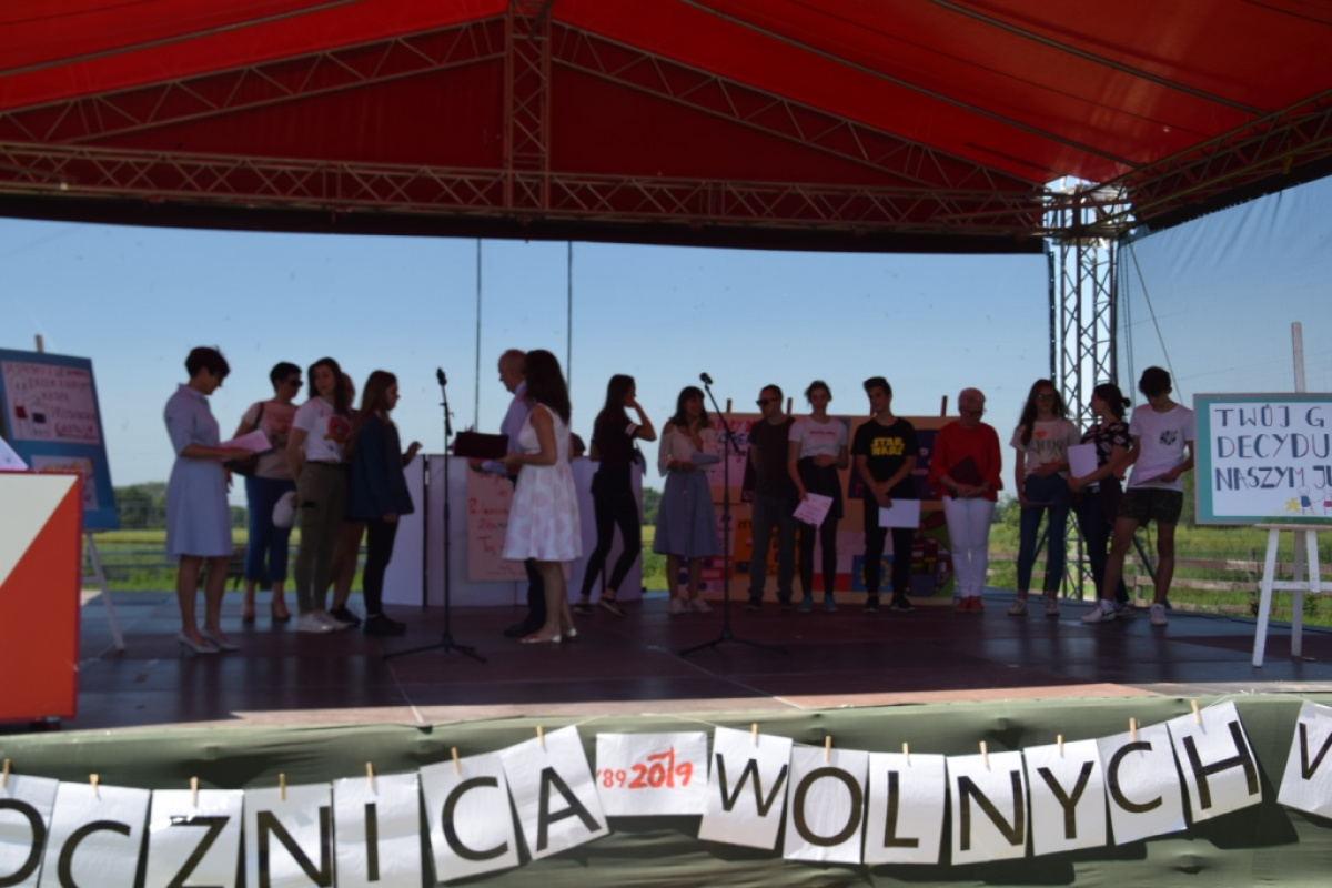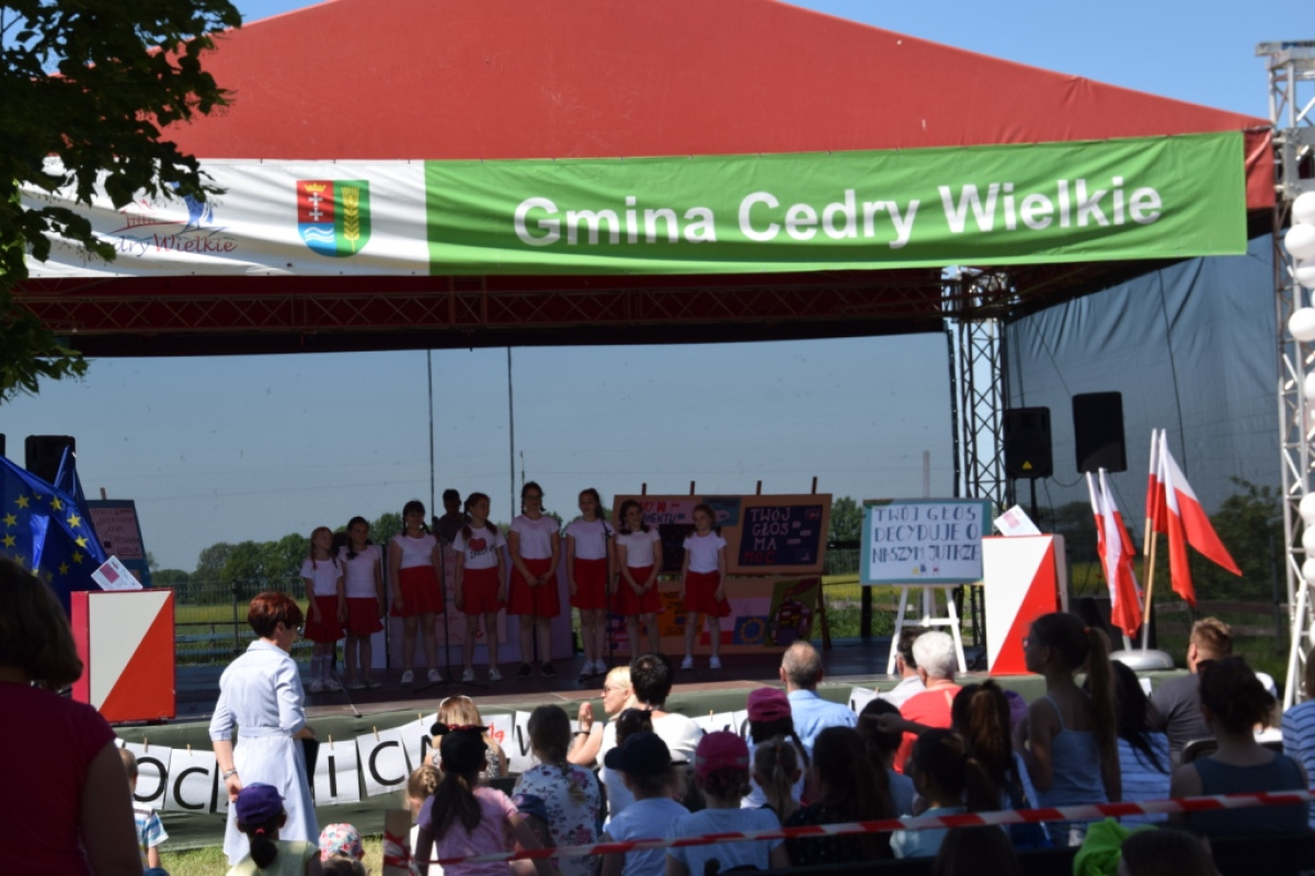 Wczoraj, 4 czerwca, na placu przy Żuławskim Ośrodku Kultury i Sportu w Cedrach Wielkich odbył się „Piknik Wolności i Solidarności” z udziałem dzieci i młodzieży ze szkół z terenu Gminy Cedry Wielkie. – Impreza była też okazją do uroczystego podsumowania konkursu „Weź zagłosuj”, organizowanego przez Obszar Metropolitarny Gdańsk, Gdynia, Sopot, do którego udział zgłosili również uczniowie ze szkół z naszej gminy – dodaje Łukasz Żarna, dyrektor Żuławskiego Ośrodka Kultury i Sportu w Cedrach Wielkich. – Osobom zaangażowanym w inicjatywę promującą głosowanie w wyborach do Europarlamentu wręczone zostały nagrody, a ich prace można było obejrzeć na specjalnej wystawie, ustawionej na scenie.