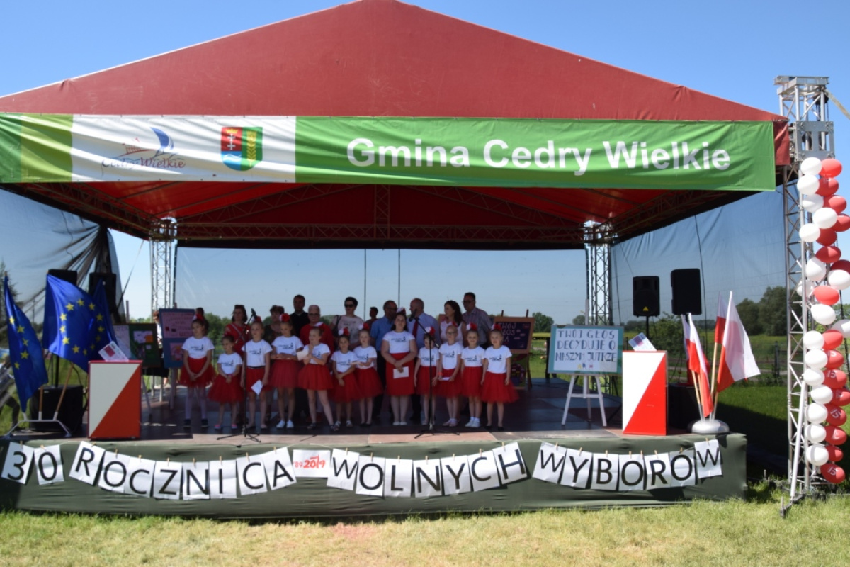 W wielu miejscach naszego kraju świętowana jest 30. rocznica pierwszych częściowo wolnych wyborów w Polsce. Nie inaczej było w Cedrach Wielkich, gdzie zorganizowano z tej okazji Piknik Wolności i Solidarności. Młodym Czytelnikom warto powiedzieć, że 4 czerwca odbyła się pierwsza tura pierwszych po II wojnie światowej częściowo wolnych wyborów do Sejmu i całkowicie wolnych do Senatu, zakończonych miażdżącym zwycięstwem obozu „Solidarności”. Zwycięzcy zdobyli 99 na 100 mandatów senatorskich i wszystkie 161 mandatów poselskich przypadających kandydatom bezpartyjnym. Datę tę uznaje się za upadek komunizmu w Polsce.
