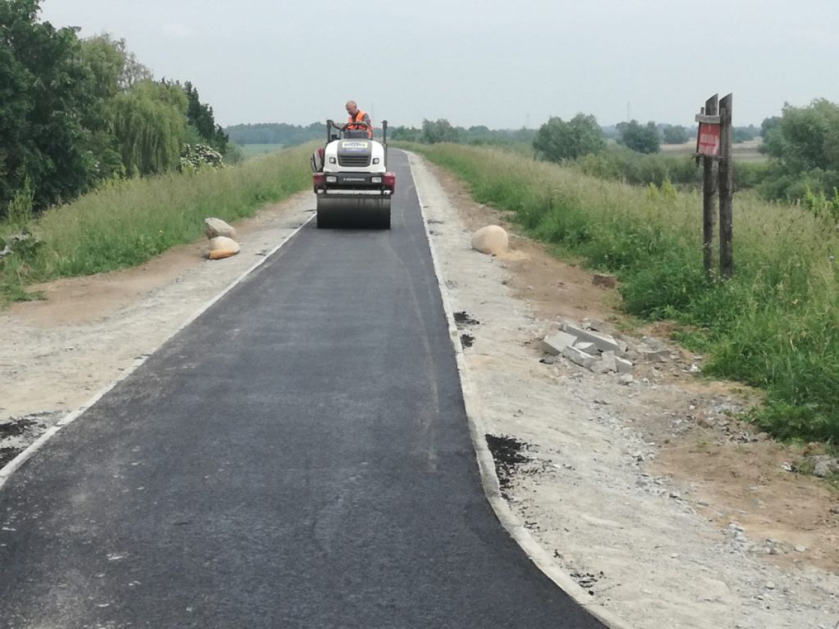 Generalny Wykonawca ścieżki rowerowej na terenie naszej gminy rozpoczął układanie nawierzchni bitumicznej na nowo powstającym ponad 10 km odcinku ścieżki rowerowej na wałach wiślanych. Odcinek na wałach przeciwpowodziowych wiedzie od miejscowości Giemlice poprzez Leszkowy, Kiezmark (połączenie ze ścieżką na starym moście), aż do przystani żeglarskiej w Błotniku.