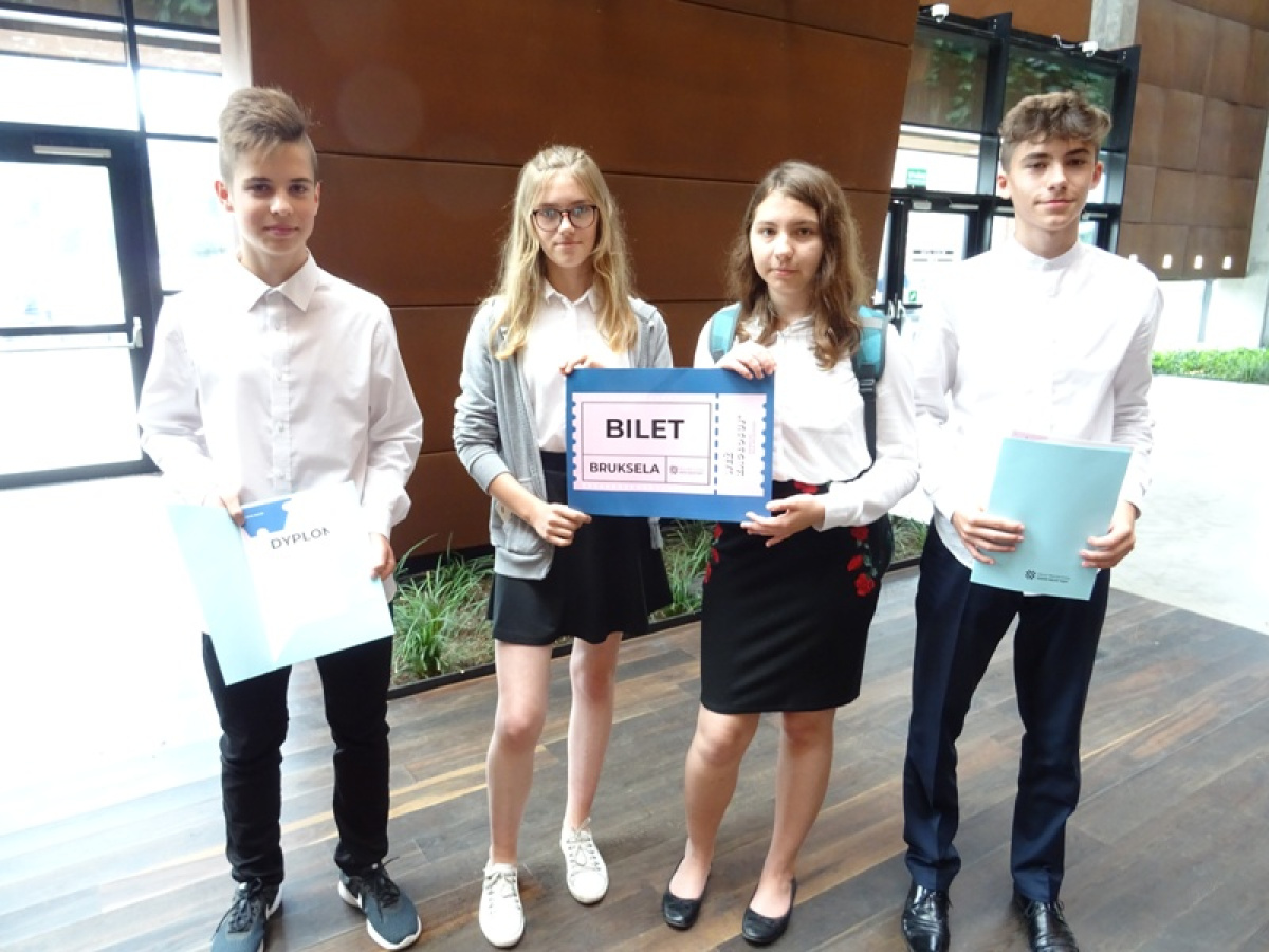 Choć w szranki konkursowe stanęło 37 drużyn, udało się zdobyć cenne nagrody. 4 - osobowa drużyna uczniów klasy ósmej ze Szkoły Podstawowej im. Obrońców Ziem Polskich w Wocławach - Adam i Amelia Gańscy, Julianna Kroft i Antoni Czuba, za przygotowanie inicjatywy pt. „Gmina Cedry Wielkie z Unią Europejską” w nagrodę jadą na dwudniową wycieczkę do Brukseli. Natomiast, uczennice ze Szkoły Podstawowej w Giemlicach Natalia Olechnowicz i Oriana Gara za przygotowaną inicjatywę "Zagłosuj bo warto" zdobyły wycieczkę do Warszawy, ze zwiedzaniem Parlamentu RP. Symboliczne bilety wręczył zwycięzcom podczas uroczystości Wójt Gminy Cedry Wielkie Pan Janusz Goliński.