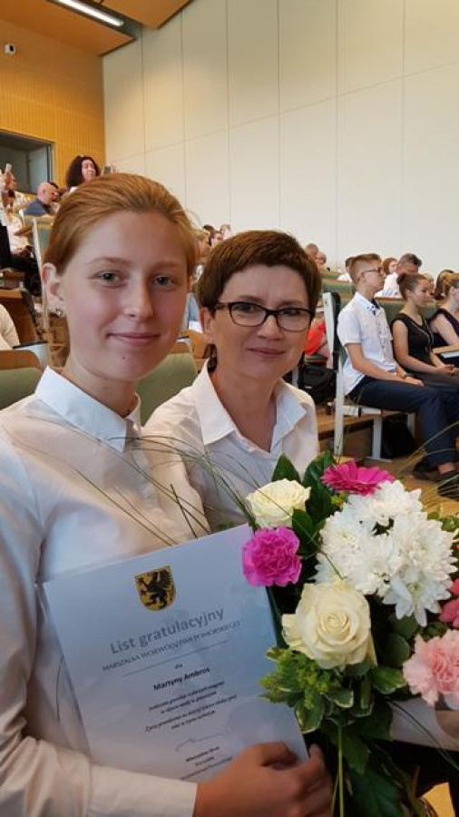 W eliminacjach brano pod uwagę m.in. wzorową ocenę z zachowania, wysoką średnią ocen podczas trzyletniej nauki w gimnazjum, udział w konkursach, działalność społeczną. Marszałek Województwa Pomorskiego - Pan Mieczysław Struk wręczył Martynie List Gratulacyjny. Do gratulacji dołączyła się Kierownik Referatu Oświaty, Kultury i Sportu Urzędu Gminy Cedry Wielkie Pani Sylwia Makrucka.