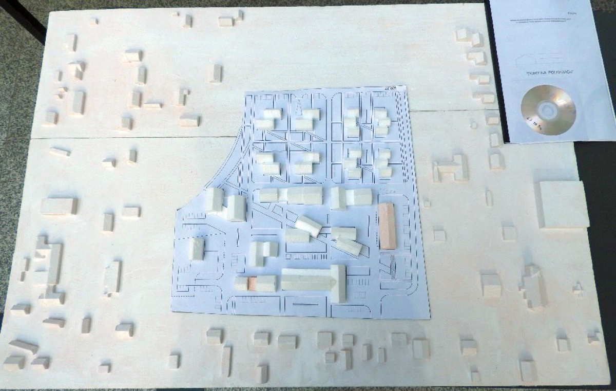 Wyróżnienie w wysokości 1.000 zł autorstwa Adrianny Koza, Adrianny Lis, Tomasza Kostuch, Aleksandry Kuklińskiej, Natalii Kwiatkowskiej. Za prosty układ kompozycji urbanistycznej o niskiej intensywności zabudowy, której integralną część stanowi plac przestrzeni publicznej. Układ nowej zabudowy tworzy regularnie określony rytm oraz koresponduje z istniejącą kiedyś trasą kolei wąskotorowej.