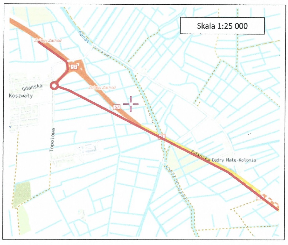 Z dniem 27.04.2017 r. ruch z istniejącego układu drogowego będzie przekierowany od strony Gdańska na rondo w Koszwałach i poprowadzony objazdem wybudowaną drogą dla ruchu lokalnego oznaczoną P-1.