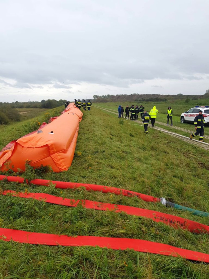 Żuławy to teraz terem narażony na podtopienia i powodzie, dlatego też część ćwiczeń dotyczyła stawiania zapór. Warto w tym miejscu nadmienić, że nasza gmina systematycznie – przy wykorzystaniu środków unijnych – uzupełnia sprzęt, który ma służyć właśnie w kryzysowych sytuacjach zagrażających ludzkiemu dobytkowi, a przede wszystkim zdrowiu. W ćwiczeniach wykorzystano zapory oraz motopompy, które zakupiono w ramach programu „Bezpieczne Żuławy”.