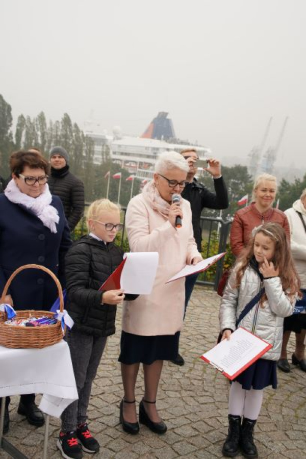 Zwieńczeniem uroczystości było złożenie przez delegację pierwszaków w hołdzie walczącym i poległym żołnierzom, kwiatów i znicza pod pomnikiem Obrońców Wybrzeża Westerplatte - w miejscu ważnym historycznie dla Polaków, mieszkańców Pomorza jak i związanym z imieniem Szkoły Podstawowej w Wocławach.