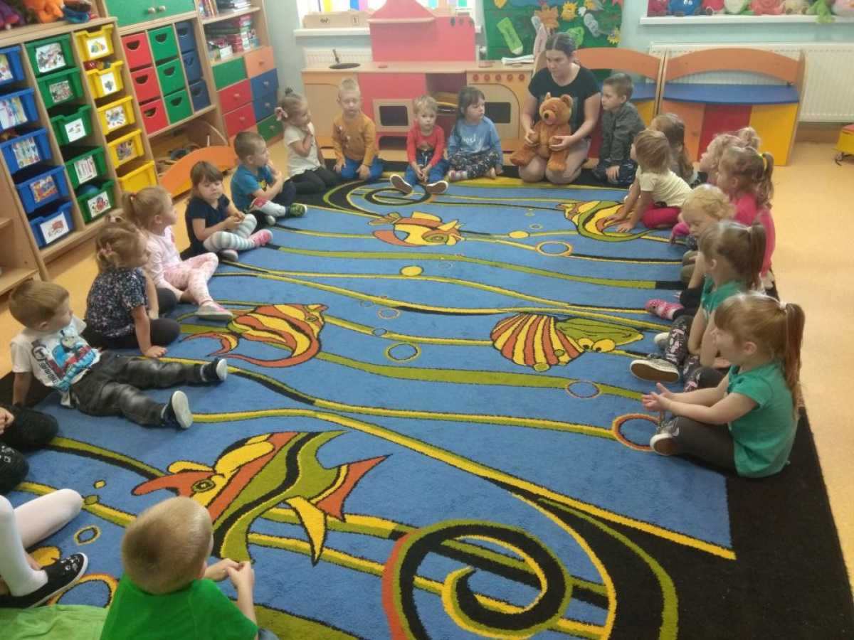 W związku z tym zaprosiły do siebie wyjątkowego gościa. Jest to niezwykły Miś o imieniu Bruno, który bardzo lubi słuchać opowiadań i bajek. Przedszkolaki zadbały o to aby w ich przedszkolu było mu miło i razem z nim odkrywają piękny świat literatury. Dzieci zabierają go także do swoich domów i razem z rodzicami czytają mu swoje ulubione bajki. Maluchy nie mogą się już doczekać aż będą mogły się nim osobiście zaopiekować.