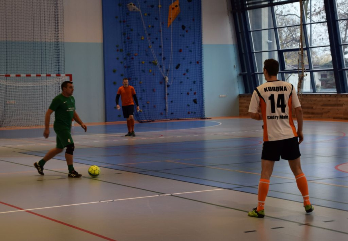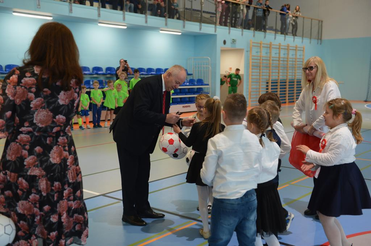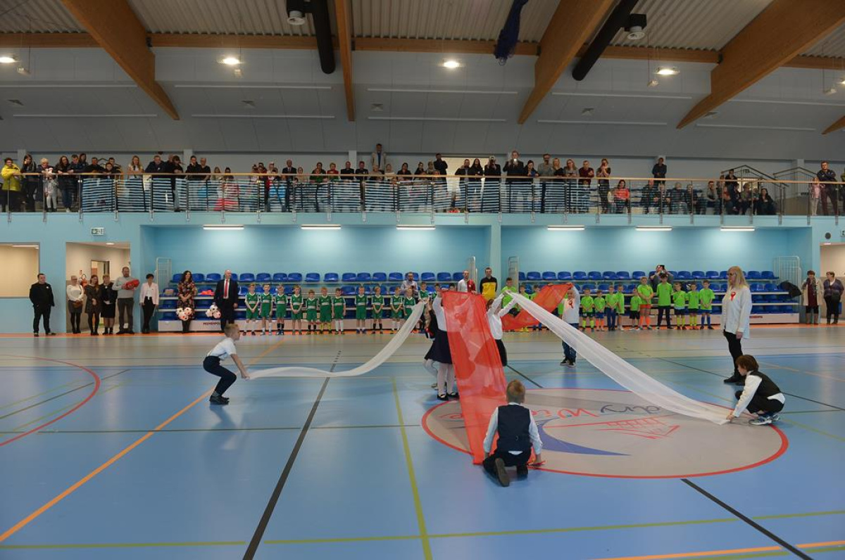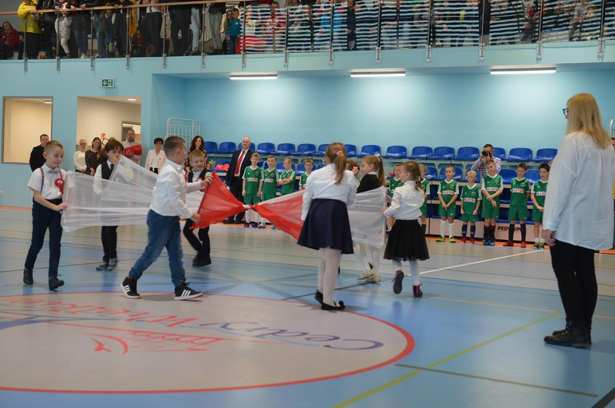 Mniej oficjalna część obchodów 101. rocznicy odzyskania niepodległości odbyła się w nowej hali widowiskowo-sportowej. Tu odbyły się mecze piłkarskie pomiędzy młodymi adeptami futbolu z Cedrów Małych (UKS Korona) i Nowego Dworu Gdańskiego (UKS Żuławy). Grali także seniorzy. Uroczystości uświetnili również nasi uczniowie, którzy zaprezentowali krótki program artystyczny. Poza atrakcjami dla ducha było też coś dla ciała – rogale świętomarcińskie, które rozeszły się w mgnieniu oka.