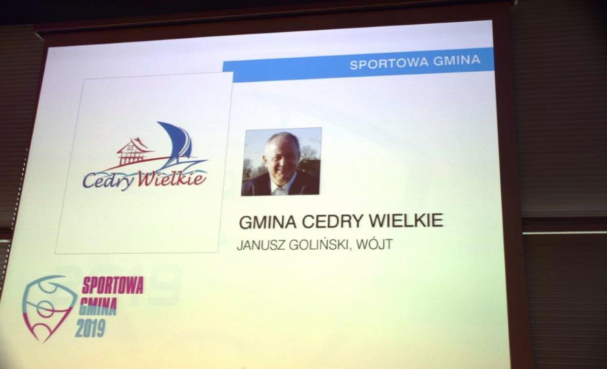 Podczas uroczystej Gali Sportowa Polska 2019 „XX lat Budownictwa Sportowego i Rekreacyjnego w Polsce” wyróżnienie w kategorii „Sportowa Gmina” odebrał Janusz Goliński, Wójt Gminy Cedry Wielkie. Gala Sportowa Polska odbyła się w siedzibie Polskiego Komitetu Olimpijskiego w Warszawie, a wyróżnienia wręczali olimpijczycy Anita Włodarczyk, Jacek Wszoła i Andrzej Supron. Nagrody przyznawane są w kilku kategoriach. Nasza gmina została doceniona za całokształt działań na rzecz sportu.