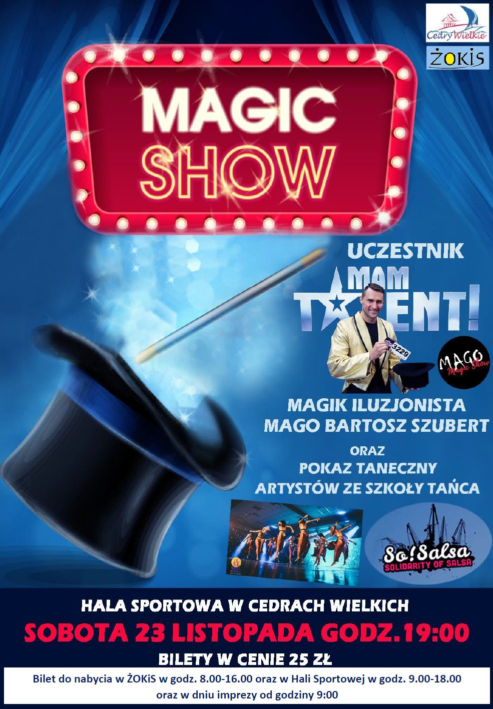 Już niewiele wolnych miejsc pozostało na sobotni Magic Show, który o godz. 19.00 rozpocznie się w hali w Cedrach Wielkich. Gwiazdą wieczoru będzie Bartosz Szubert, iluzjonista – uczestnik znanego programy rozrywkowego „Mam talent”.