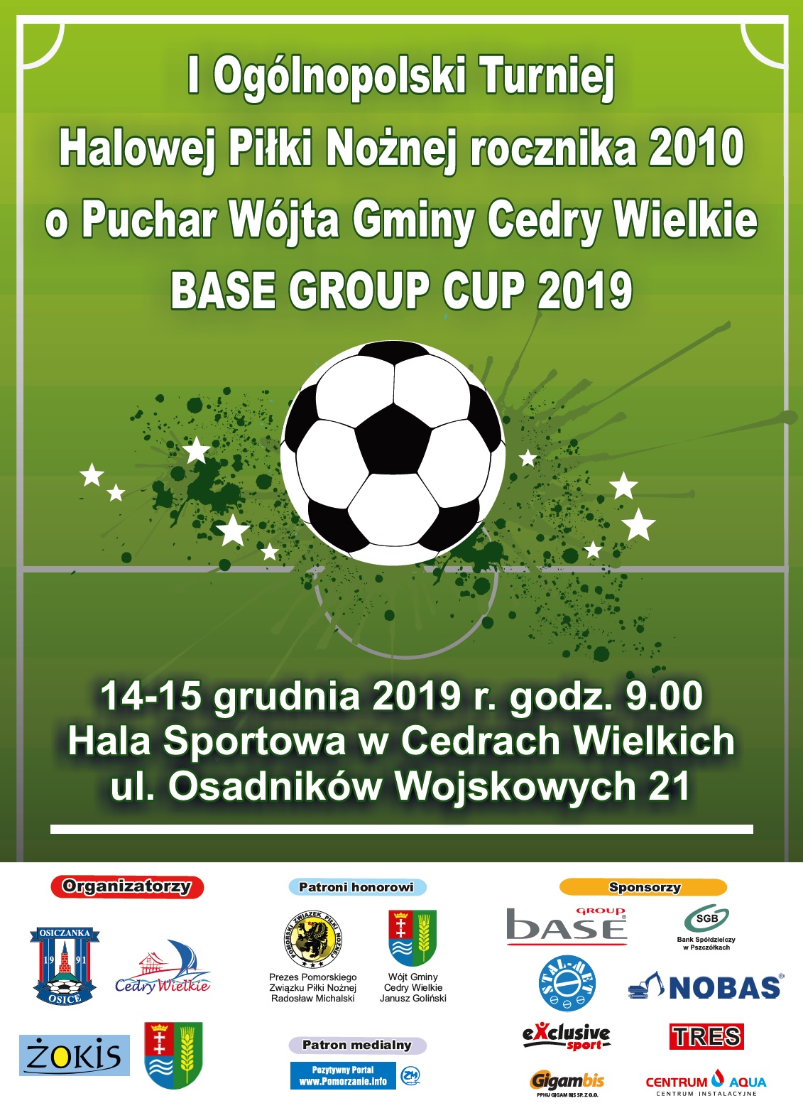 Jest weekend, jest impreza – tym razem piłkarska. W najbliższy weekend (14-15 grudnia) w naszej hali odbędzie się I Ogólnopolski Turniej Halowej Piłki Nożnej rocznika 2010 o Puchar Wójta Gminy Cedry Wielkie Base Group 2019.