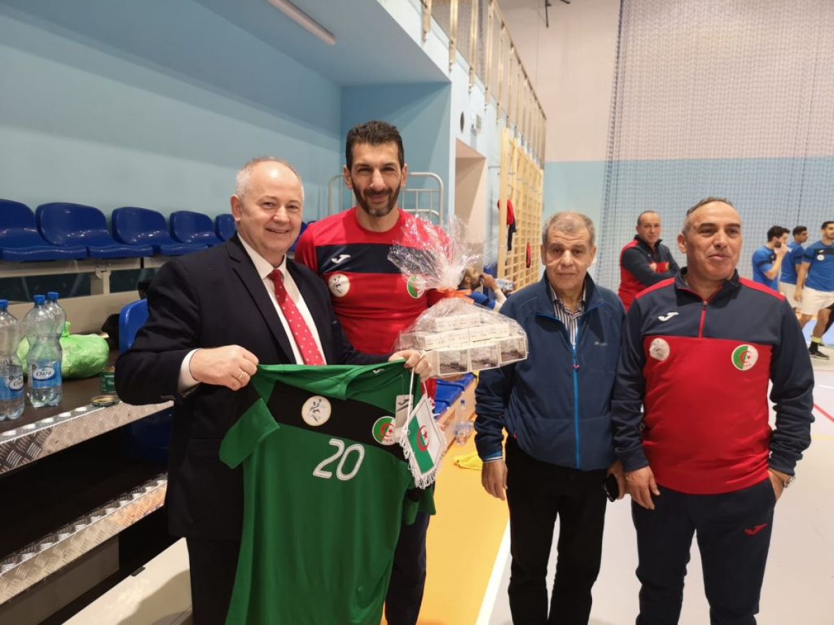 Pierwsza z nich to wyjściowy trykot reprezentacji Algierii, która w hali w Cedrach Wielkich trenowała i rozegrała sparingowy mecz z Torusem Wybrzeże. Prezent z rąk kadry szkoleniowej afrykańskiej drużyny odebrał wójt Janusz Goliński. Podobny podarunek sprawił nam bramkarz gdańskiej drużyny, który – tuż przed meczem – przekazał dwie koszulki.
