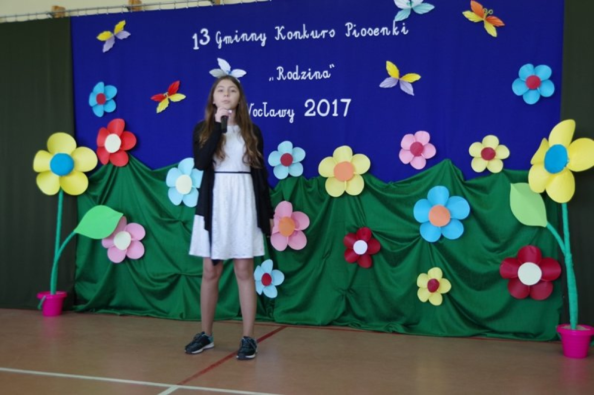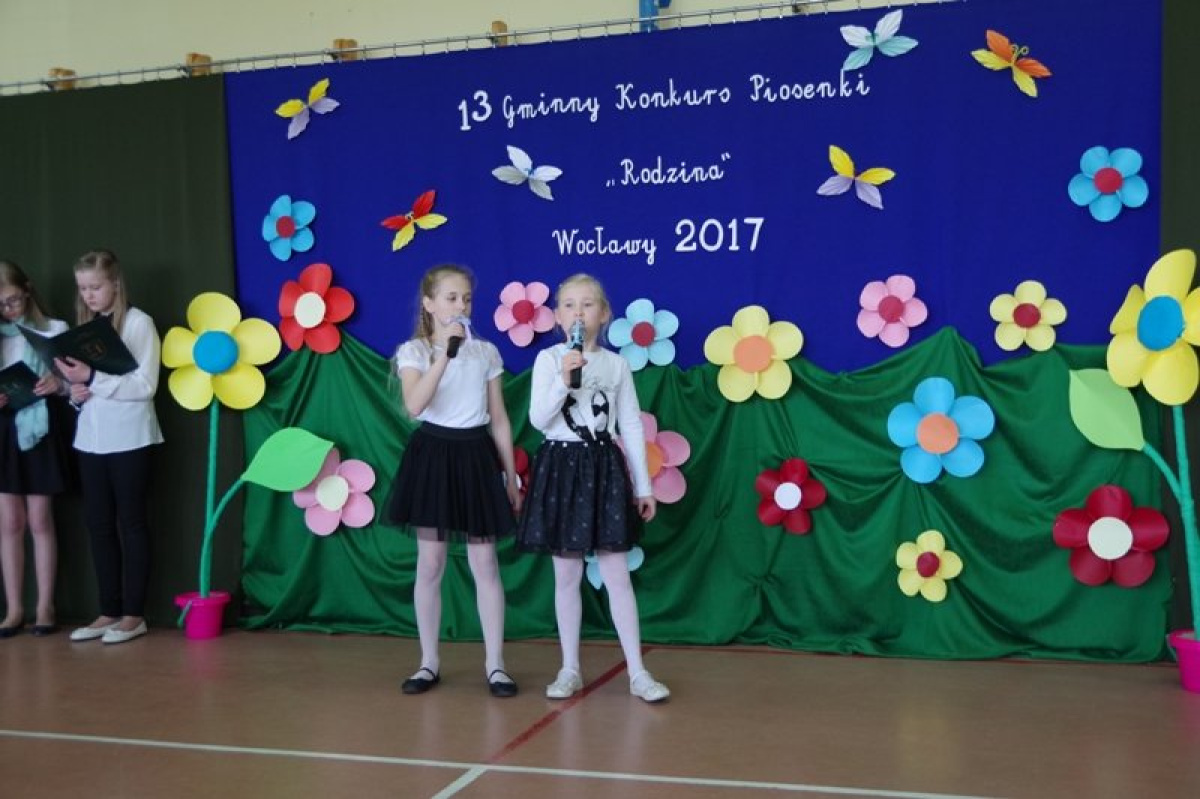 11 maja 2017 r. w Szkole Podstawowej w Wocławach odbył się XIII Gminny Konkurs Piosenki pod hasłem „Rodzina”. Zaproszonych gości, rodziców oraz uczniów powitała Pani Iwona Karlinski - Dyrektor Szkoły. Swoje umiejętności zaprezentowali uczniowie klas 0-III i klas IV-VI z placówek oświatowych terenu naszej gminy.