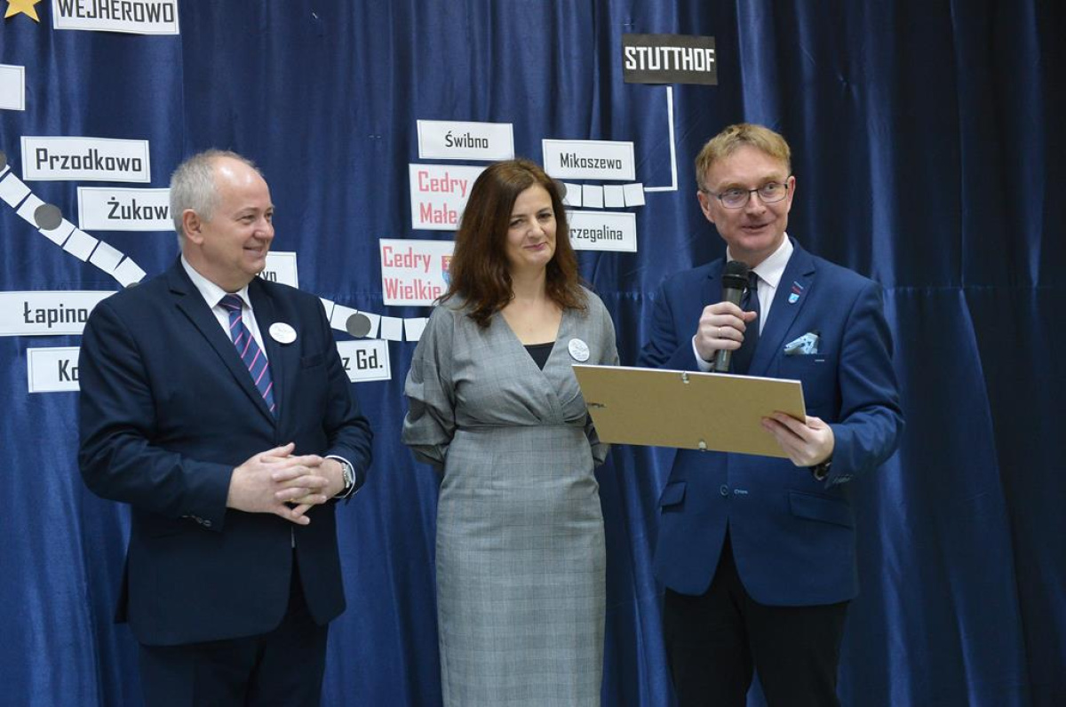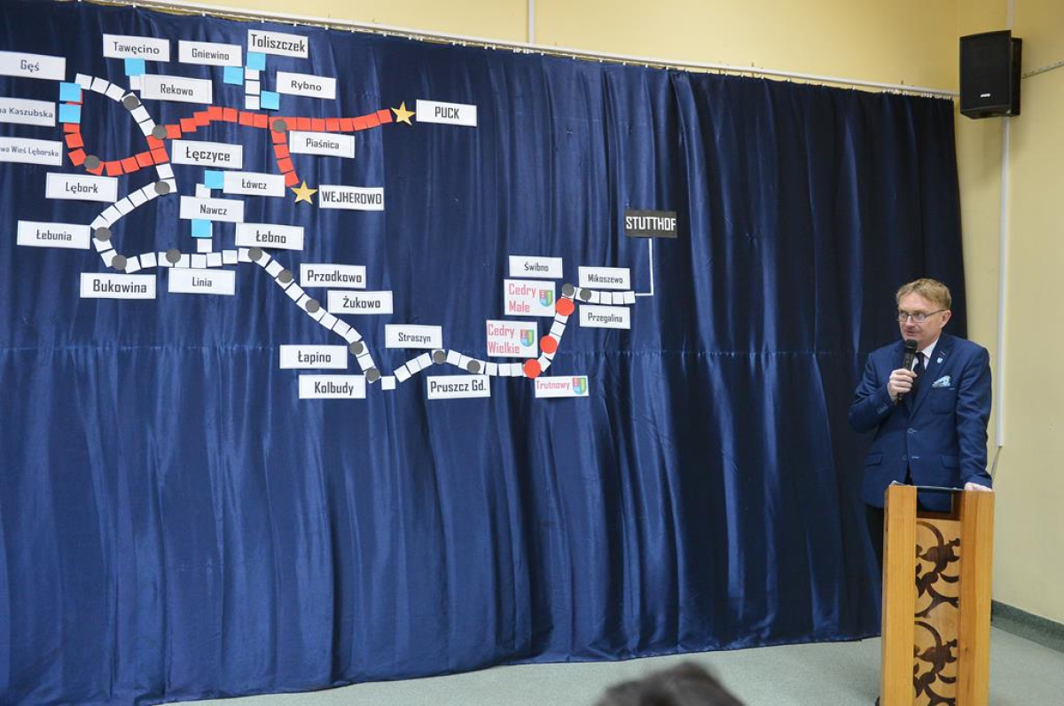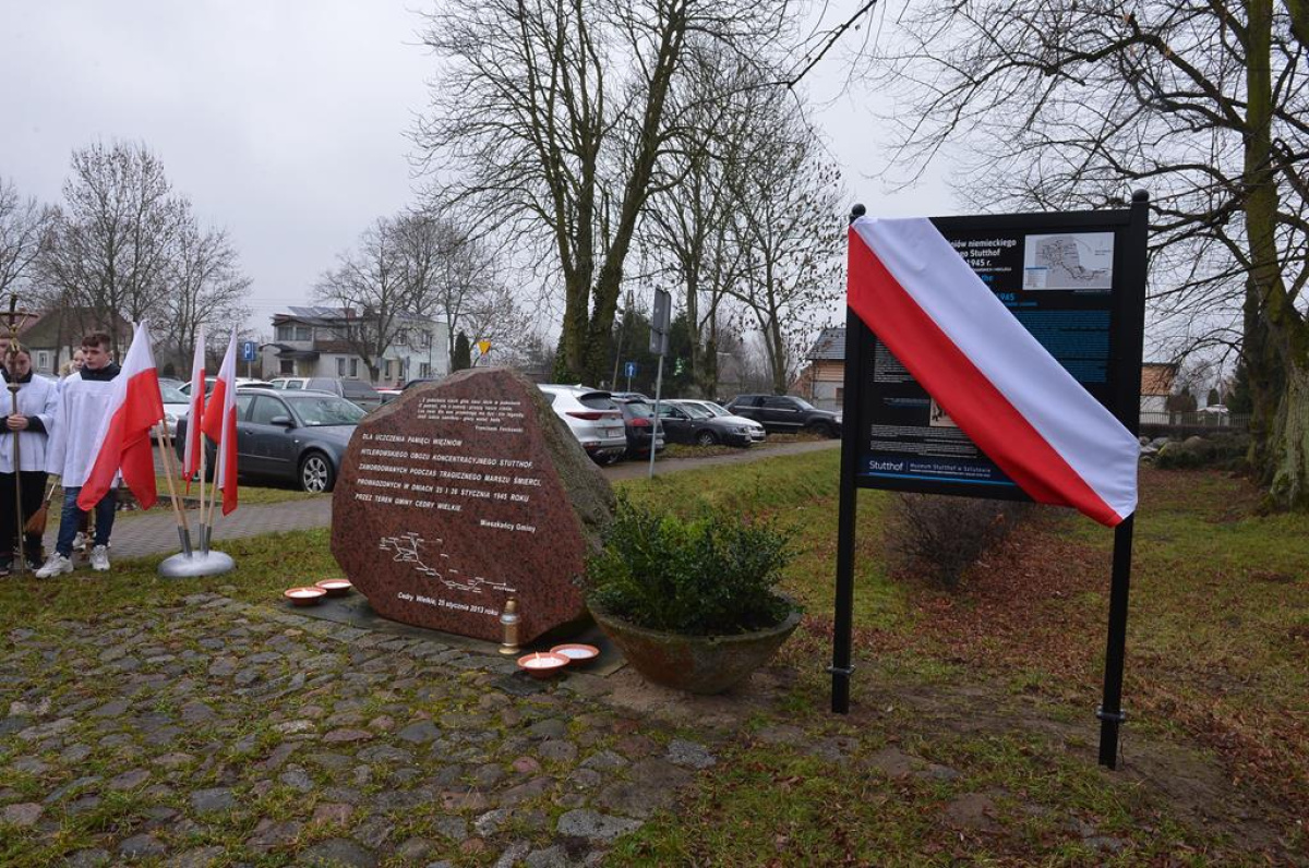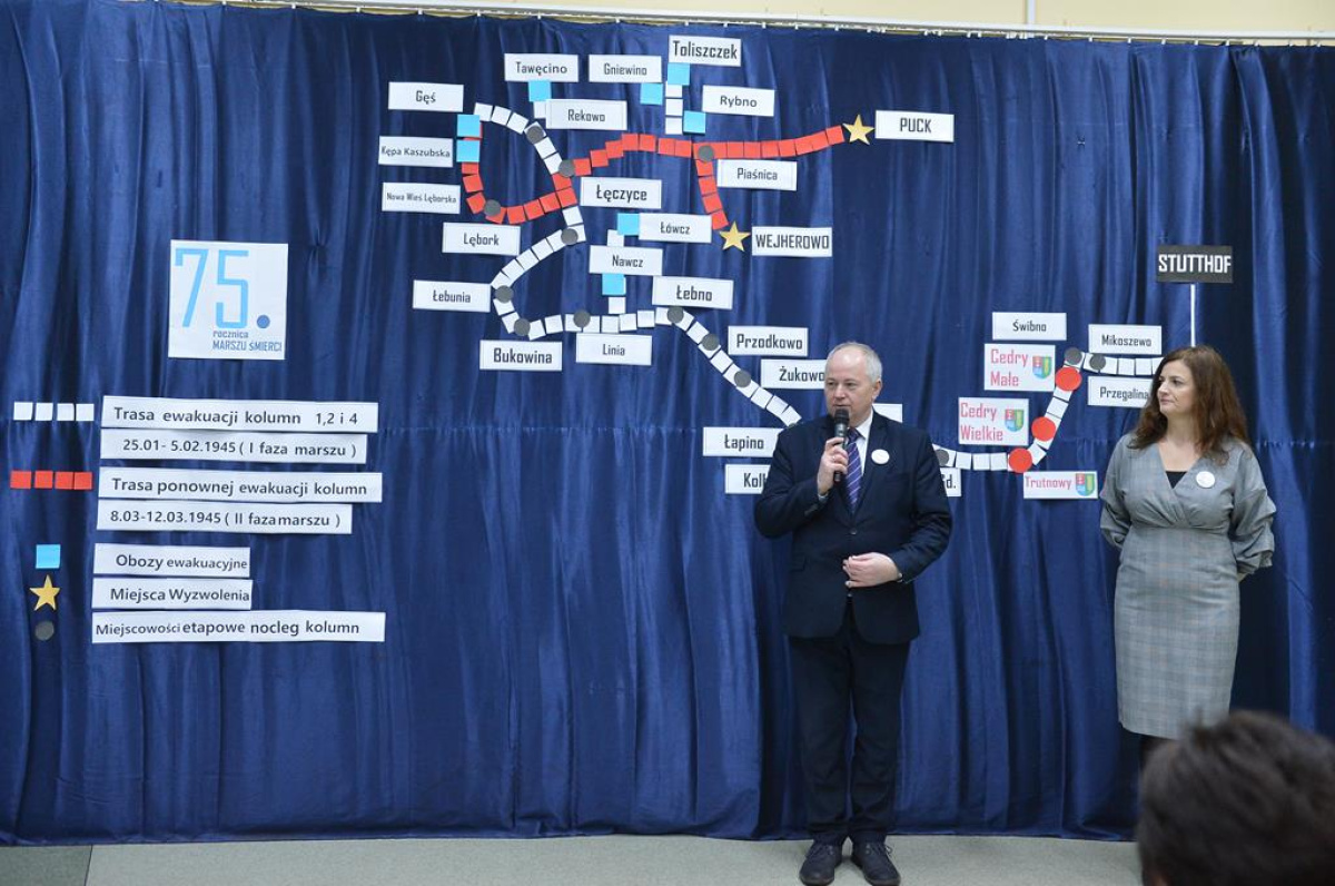 Dzięki dobrej współpracy naszej gminy z Muzeum Stutthof udało się odsłonić tablicę informacyjną, na której znaleźć można rzetelne informacje na temat Marszu Śmierci, podczas którego zginęło ok. 17 tysięcy osób.