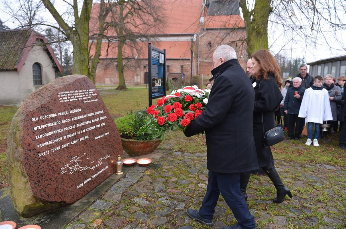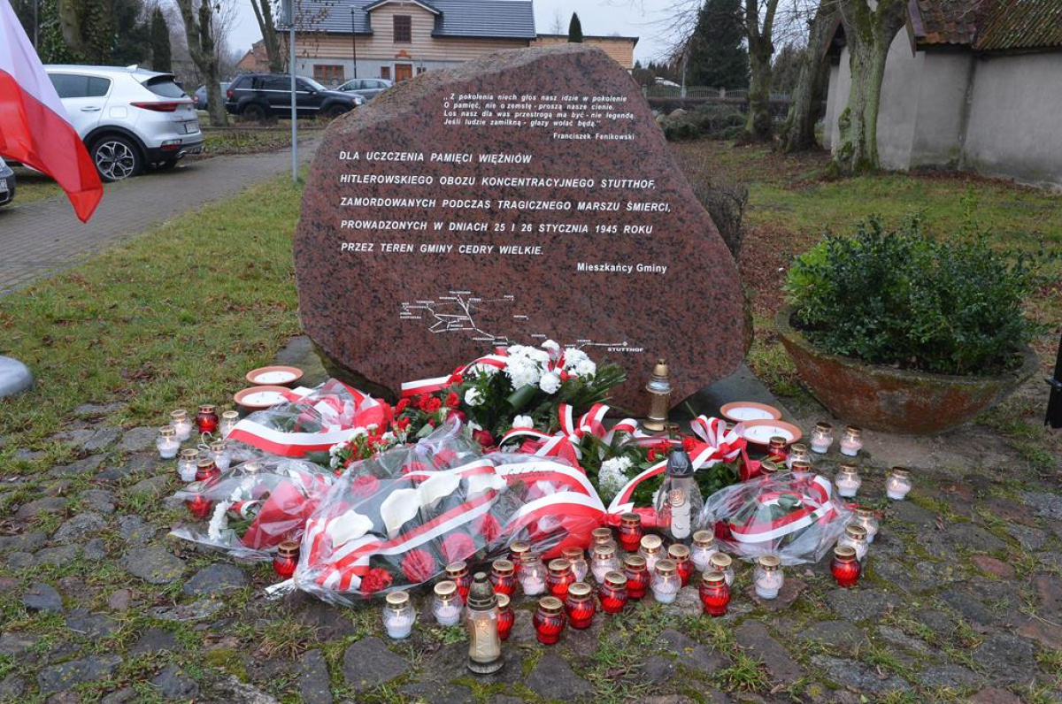 – Od 8 lat spotykamy się pod obeliskiem, który nieprzypadkowo stanął na trasie Marszu Śmierci. Cieszę się, że razem z nami są dzieci, bo dzięki temu wspólnie budujemy pokolenie pamięci, a nasza historia – często też smutna – będzie wciąż trwała. Z każdym dniem zmniejsza się liczba osób, które przeżyły ten marsz, ale pamięć o nich musi trwać. Będziemy o to dbać – mówi Janusz Goliński, Wójt Gminy Cedry Wielkie.