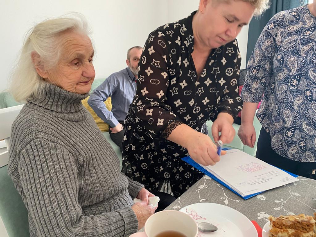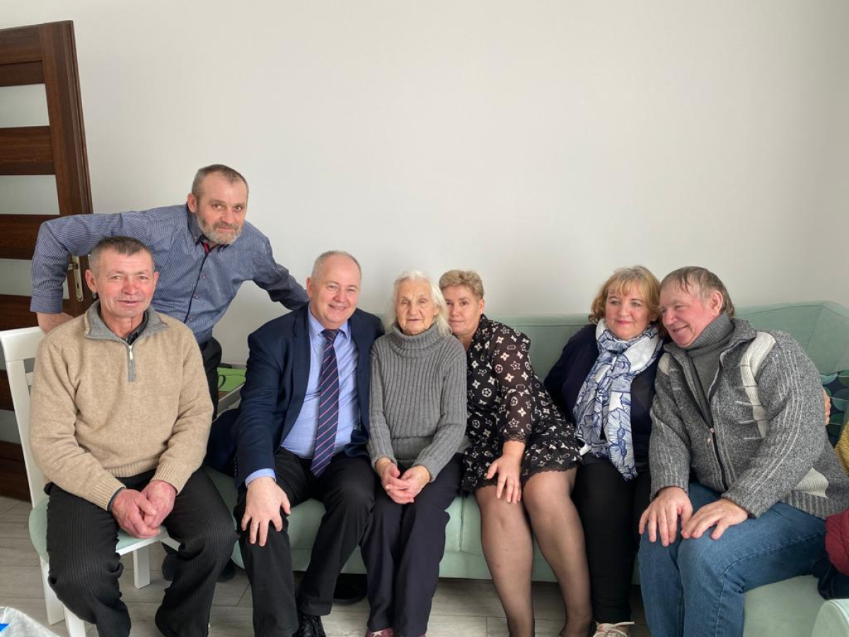 Zacnej Jubilatce osobiście życzenia złożyli wójt Janusz Goliński i Izabela Łęcka, kierownik GOPS w Cedrach Wielkich.