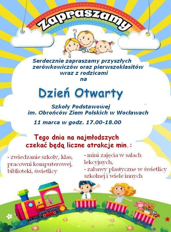 Już 11 marca (środa) przyszłych przedszkolaków, zerówkowiczów oraz pierwszoklasistów zaprasza Szkoła Podstawowa w Wocławach. Dzień otwarty rozpocznie się o godz. 17.00. Tego dnia – poza zwiedzaniem szkoły – na najmłodszych czekać będzie moc atrakcji, wśród których nie zabraknie intersujących zajęć czy zabaw plastycznych w świetlicy szkolnej.