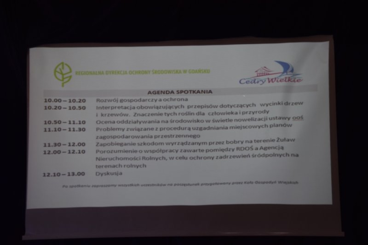 Regionalna Dyrekcja Ochrony Środowiska w Gdańsku w dniu 26 maja 2017 r. na zaproszenie Pana Janusza Golińskiego - Wójta Gminy Cedry Wielkie zorganizowała spotkanie - konferencję nt. działalności RDOŚ i współpracy pomiędzy różnymi grupami interesariuszy Spotkanie odbyło się w Żuławskim Ośrodku Kultury i Sportu w Cedrach Wielkich.