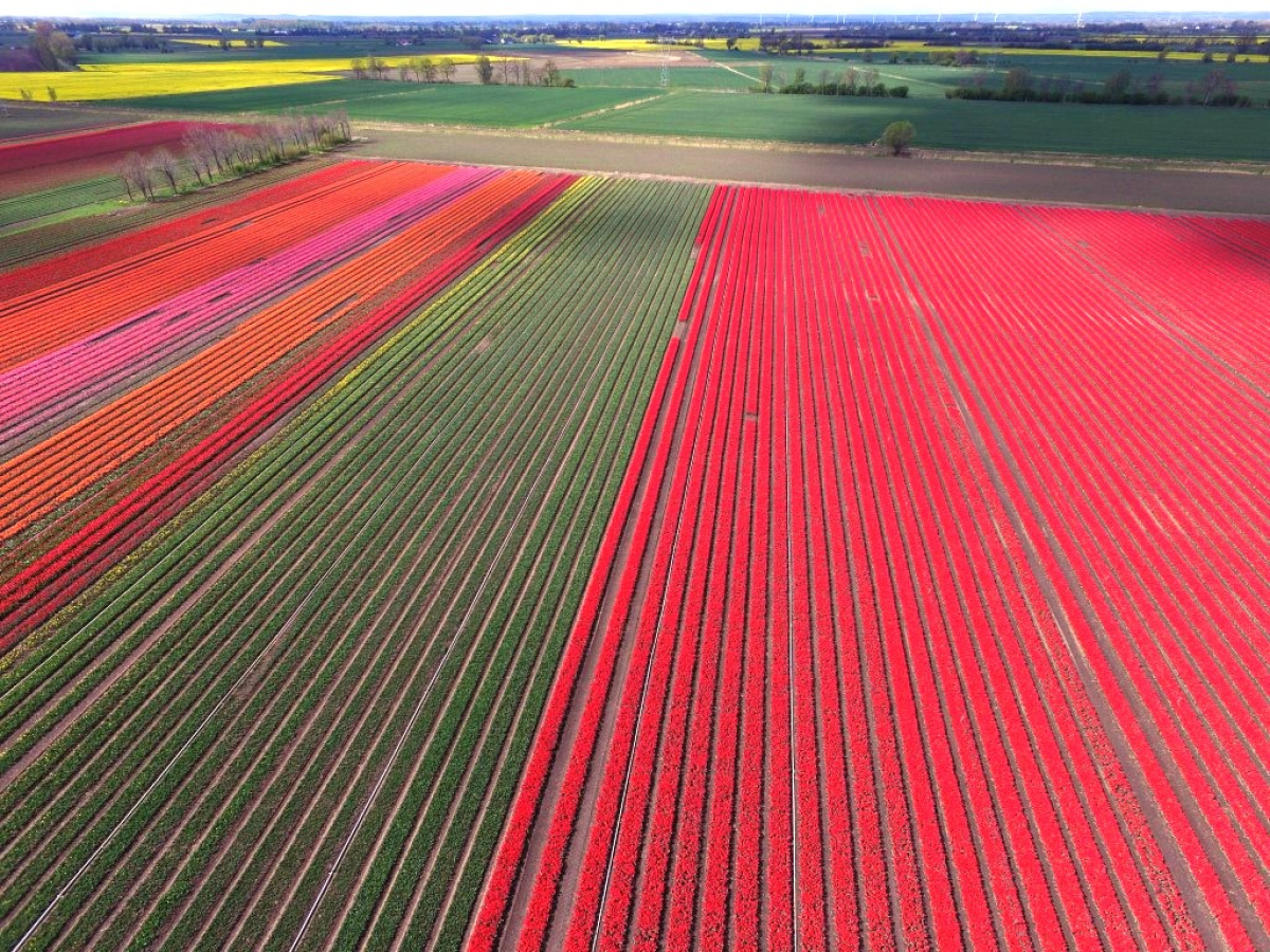 Pola, które można w chwili obecnej oglądać, prowadzone są w nowatorskiej uprawie na tzw. siatkach, co znacznie usprawnia ich zbiór. Cebulki sadzone są późną jesienią. Na wiosnę przeprowadza się selekcję w celu utrzymania czystości odmian. Jest to bardzo trudna i żmudna praca. Po zakwitnieniu główki kwiatków zostaną ścięte i od tej pory rozpoczyna się produkcja i wzmocnienie cebulki. W lipcu cebulki zostają wykopane, posortowane i następuje ich obieranie (pelowanie) polegające na usunięciu starego korzonka. W zależności od wielkości cebulki zostają one ponownie wsadzone do gruntu na jesień (te mniejsze) lub zostają przeznaczone na produkcję kwiatków w szklarni (te większe). W tym roku na plantacji możemy podziwiać między innymi następujące odmiany: Strong Gold, Pretty Princes, Princes Irene, Rococo, Pretty Women, Debutante, Ben Van Zanten i inne.