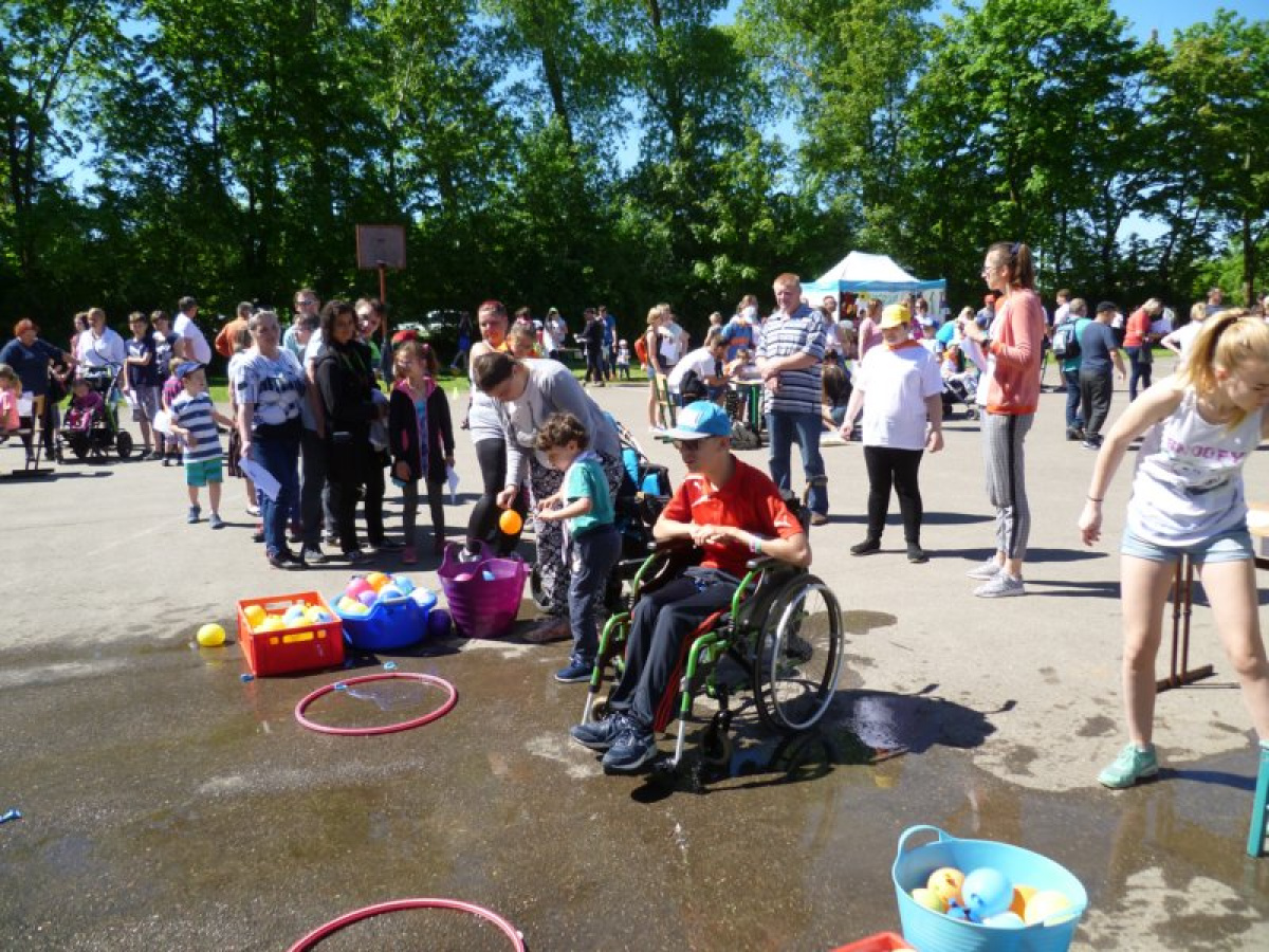 Na zawodników czekało piętnaście konkurencji, między innymi: przeciąganie liny, unihokej, odgadywanie przedmiotów bez kontroli wzroku, budowanie z megaklocków, łowienie przedmiotów ukrytych w materiałach sypkich, strzelanie piłką z procy. Najwięcej entuzjazmu wzbudzało rzucanie balonem z wodą do celu. Pieczątki przybite po każdej konkurencji na karcie każdego uczestnika gwarantowały odbiór nagród, zapewnionych przez sponsorów - którzy jak co roku od serca obdarowali naszych gości i wychowanków.
