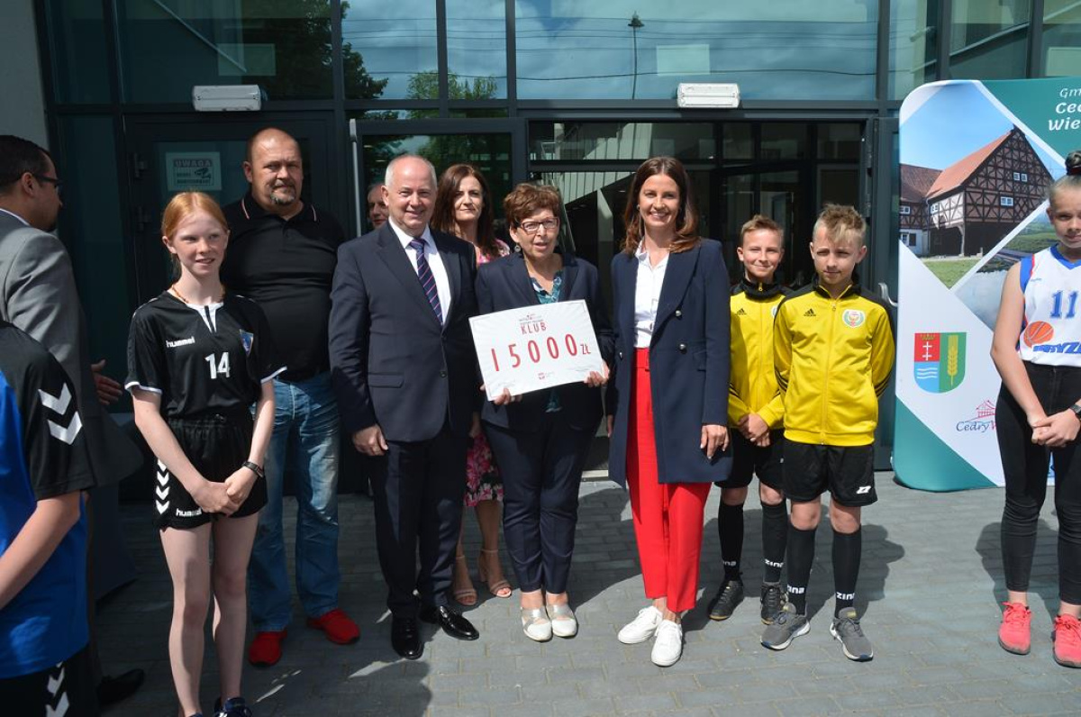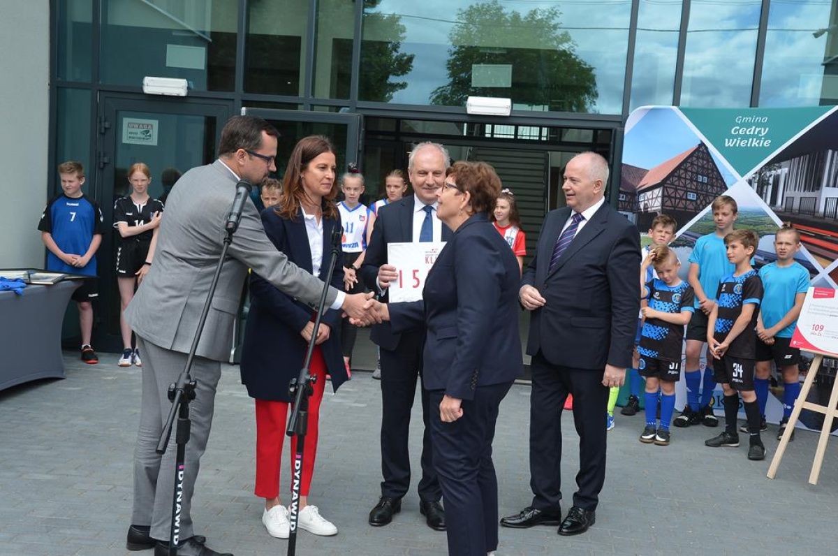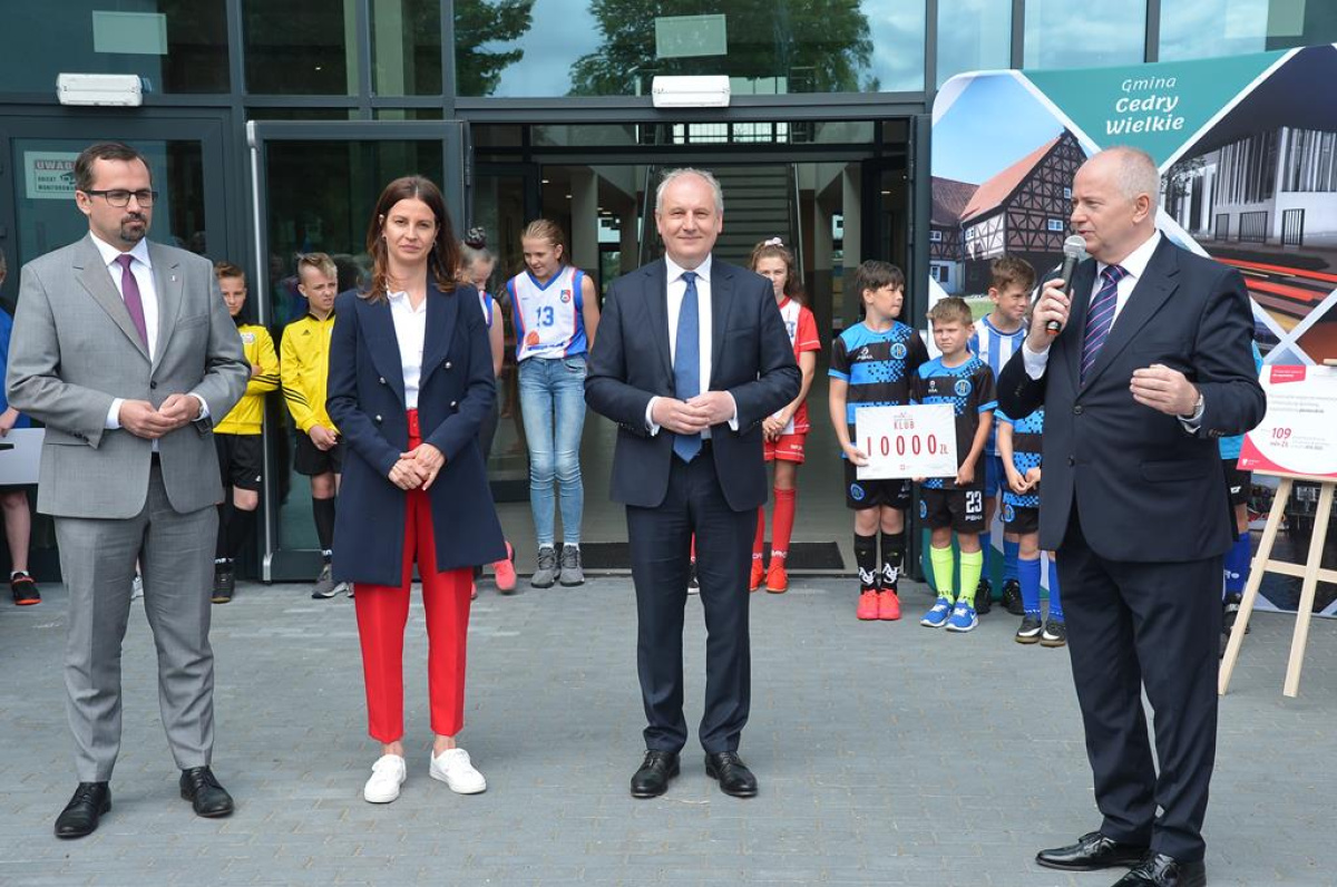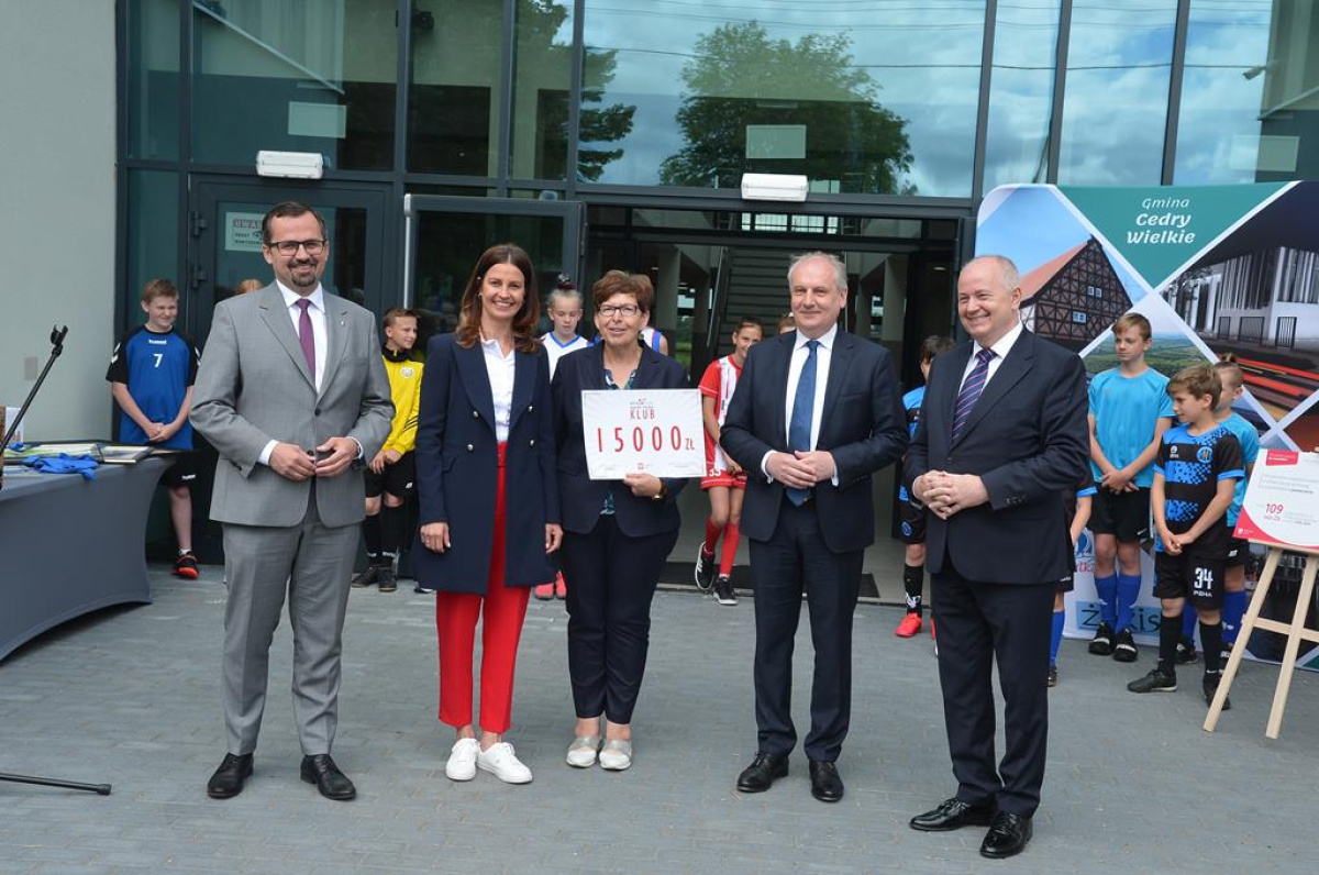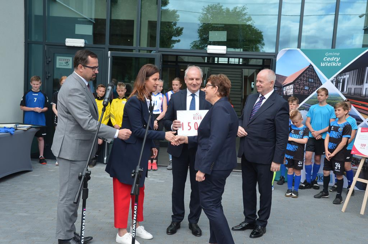 Cedry Wielkie odwiedziła Danuta Dmowska-Andrzejuk, minister sportu. Pani minister w towarzystwie wiceministra infrastruktury Marcina Horały oraz wojewody pomorskiego Dariusza Drelicha wręczała promesy w ramach programu „Klub”.