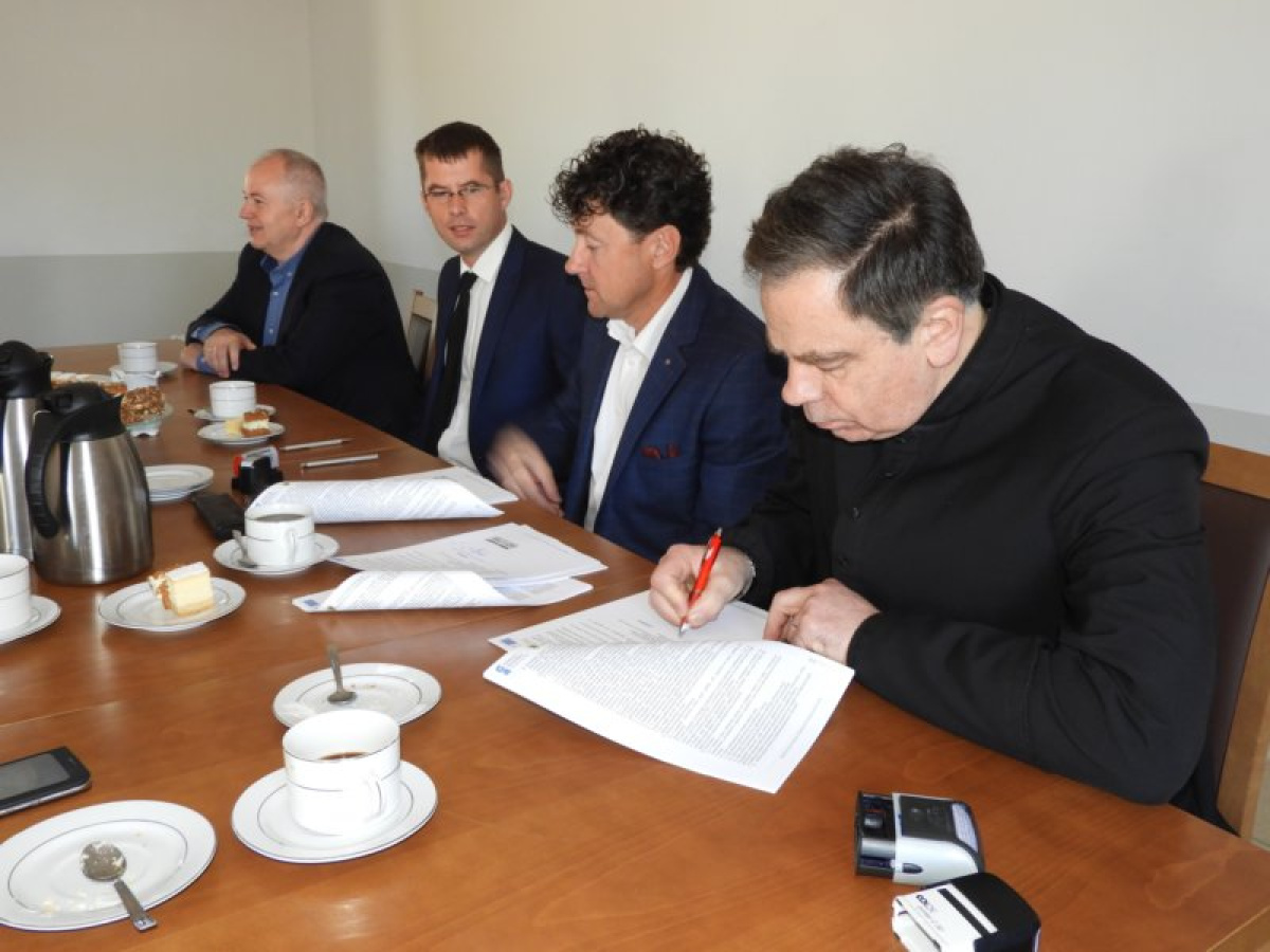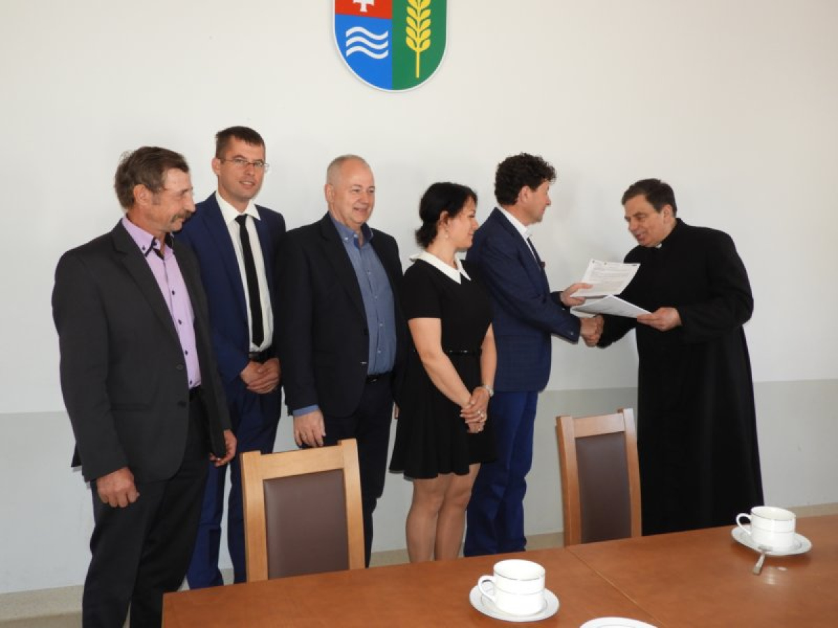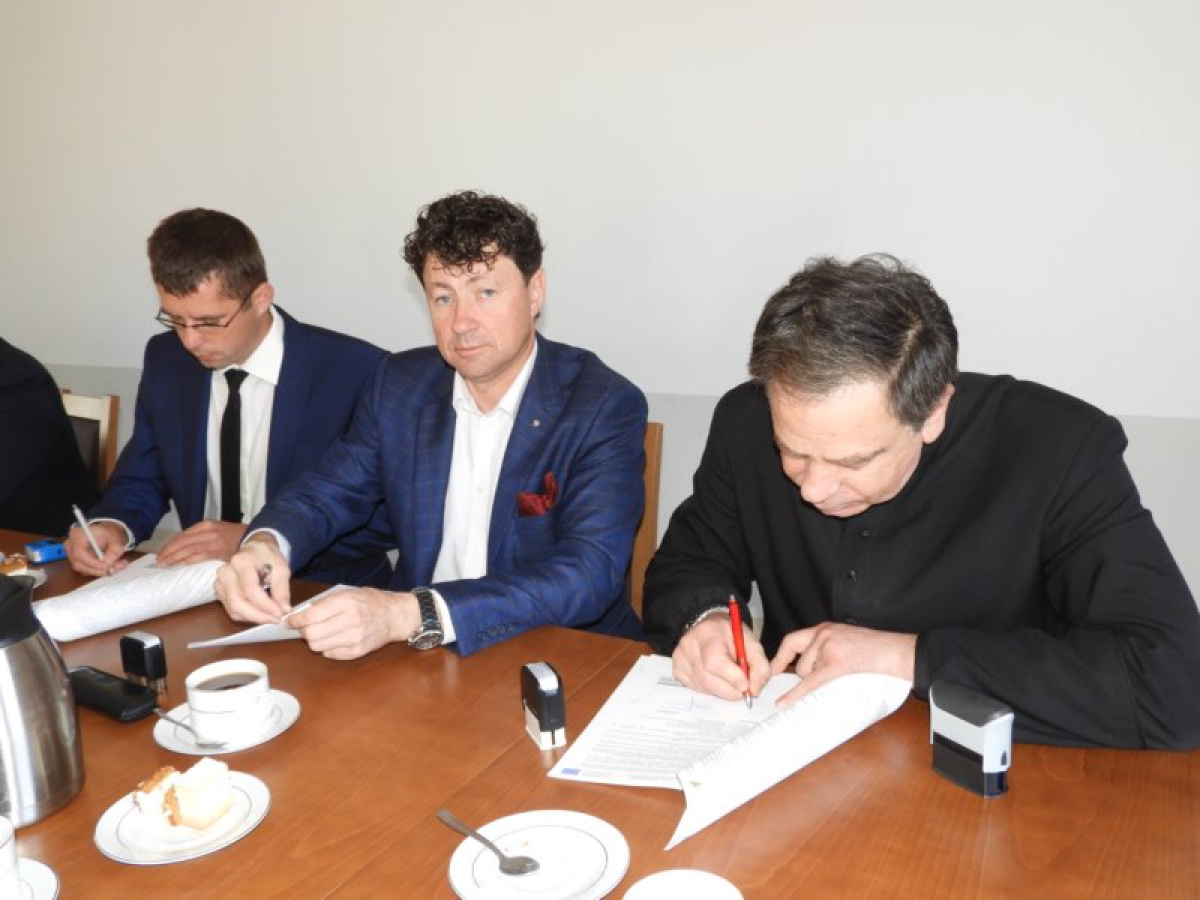 Umowę podpisali: w imieniu Parafii Kiezmark Ks. Czesław Sołtys oraz w imieniu Wykonawcy tj. Konsorcjum Ekoinbud Sp. z o.o. - Ekoinbud Renowacje Sp. z o.o. Panowie: Tomasz Balcerowski - Prezes Zarządu i Pan Marcin Korszlak - Wiceprezes Zarządu.