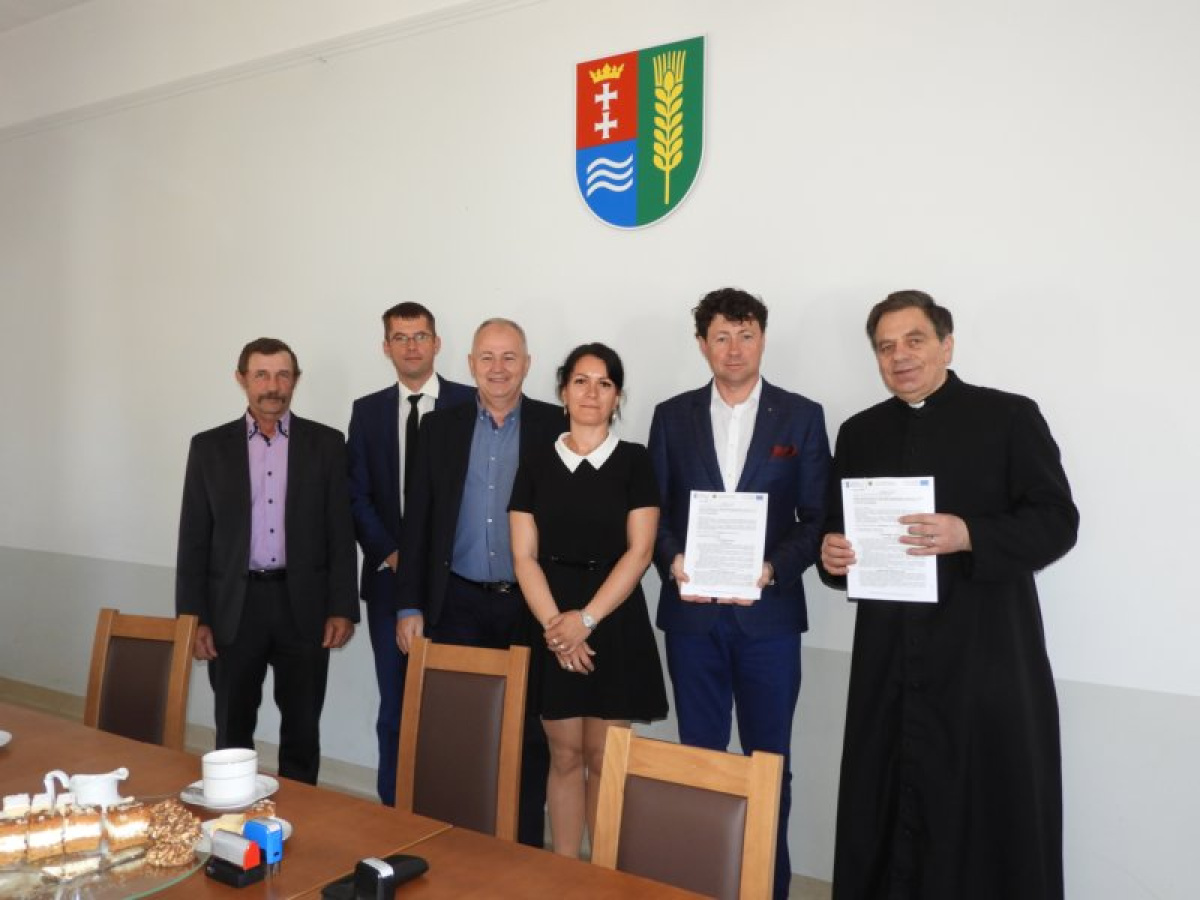 W dniu 8 czerwca 2017 r., w świetlicy wiejskiej w Kiezmarku odbyło się uroczyste podpisanie umowy na prace remontowe w obiekcie sakralnym w Kiezmarku w ramach projektu unijnego „Zachowanie Wielokulturowego Dziedzictwa Żuław poprzez wykonanie robót budowlanych, remontowych i konserwatorskich w obiektach zabytkowych i obiektach położonych na terenach objętych ochroną konserwatorską w gminach żuławskich oraz stworzenie spójnej oferty”.